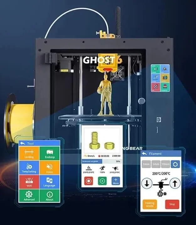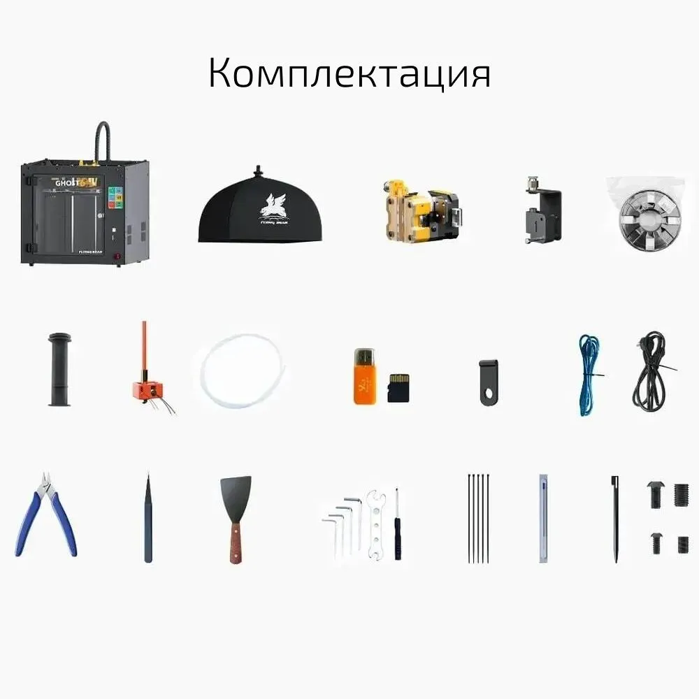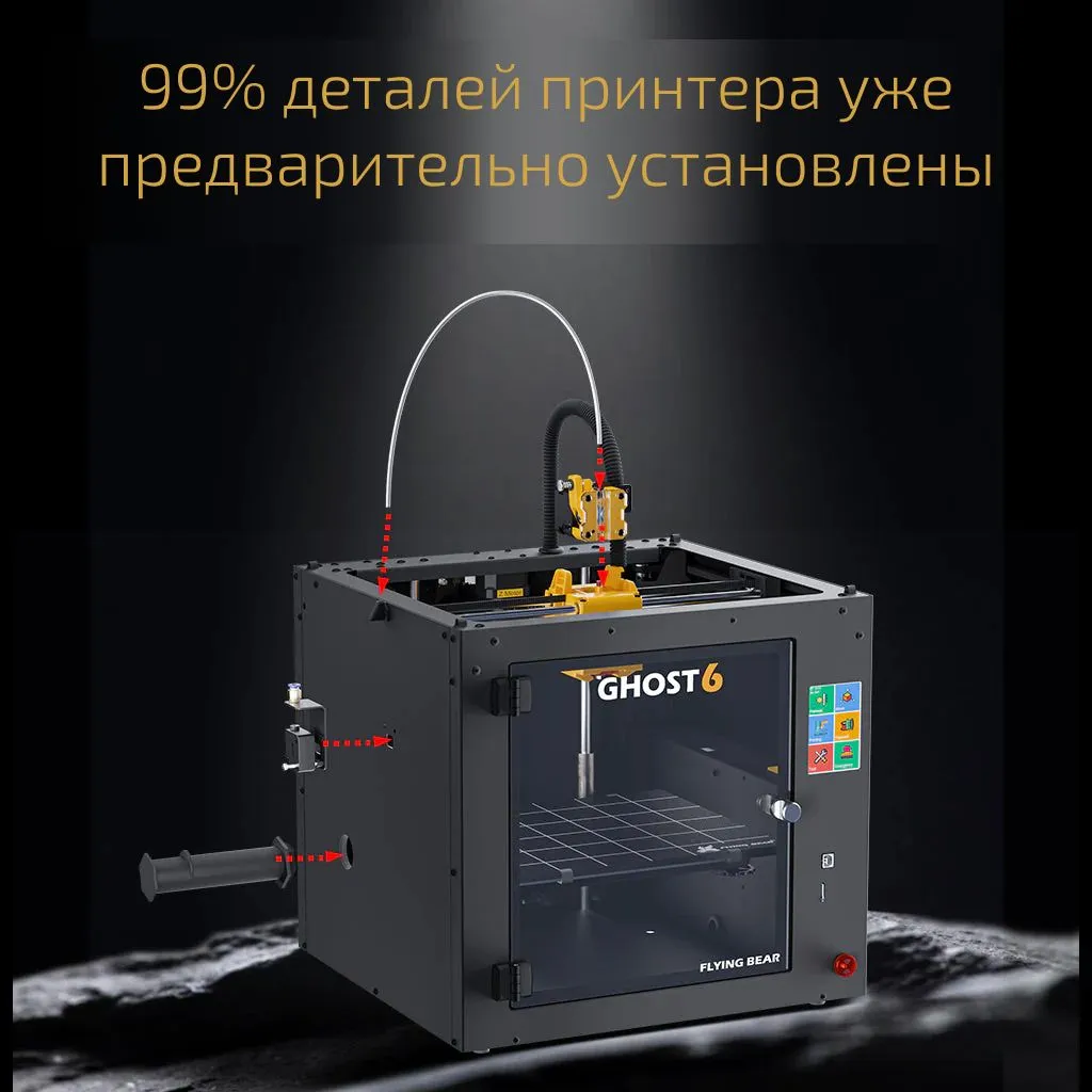 FlyingBear Ghost 6 - полностью собранный, готовый к запуску и легкий в использовании 3D-принтер. Экструдер типа direct обеспечивает более высокую точность экструдера. Легкая очистка от филамента. Благодаря съемному механизму и отверстию можно легко удалить застрявший филамент.