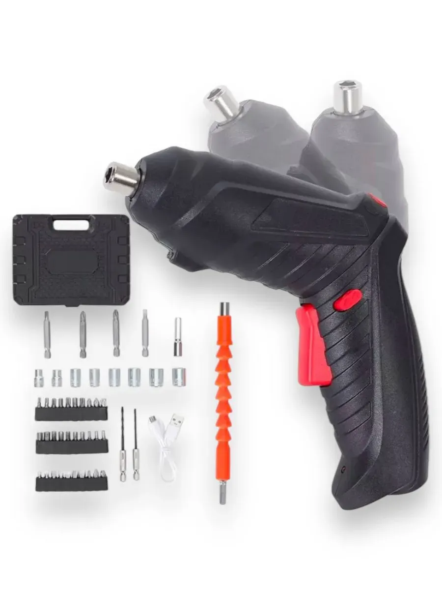Эта компактная аккумуляторная электроотвертка – незаменимый инструмент для дома и мастерской. Она сочетает в себе мощность и удобство, превосходя возможности обычной отвертки. Сердцем инструмента является мощный двигатель с металлическим редуктором и емким аккумулятором, обеспечивающим до 5-7 часов непрерывной работы. Быстрый тормоз и реверс позволяют работать с высокой точностью. В комплект входят 30 бит и 15 дополнительных насадок, включая торцевые головки размером от 5 до 12 мм, изготовленные из высокопрочной стали S2. Магнитный держатель бит надежно удерживает их на месте. Гибкий удлинитель позволяет добраться до самых труднодоступных мест, где обычная отвертка бессильна. Встроенная подсветка обеспечивает комфортную работу даже в условиях недостаточного освещения. Управление интуитивно понятно, с двумя кнопками для выбора направления вращения. Литиевый аккумулятор 3,6-4,2 В с емкостью 1300-1800 мАч обеспечивает скорость вращения 250 об/мин. Зарядка осуществляется через стандартный MicroUSB-кабель, входящий в комплект. Прочный противоударный корпус защищает инструмент от повреждений. Удобный кейс для хранения и транспортировки прилагается. Этот набор идеален для работы с мебелью, бытовой техникой и множеством других задач, требующих закручивания и откручивания винтов, гаек и других крепежных элементов. Аккумуляторная электроотвертка – экологически чистый и экономичный вариант, не требующий подключения к сети. Эргономичный дизайн и удобный хват обеспечивают комфортную работу. Если вам нужен надежный, мощный и многофункциональный инструмент, эта аккумуляторная электроотвертка – именно то, что вы искали. Это отличный подарок для любого мужчины, ценящего качественный инструмент и практичность.