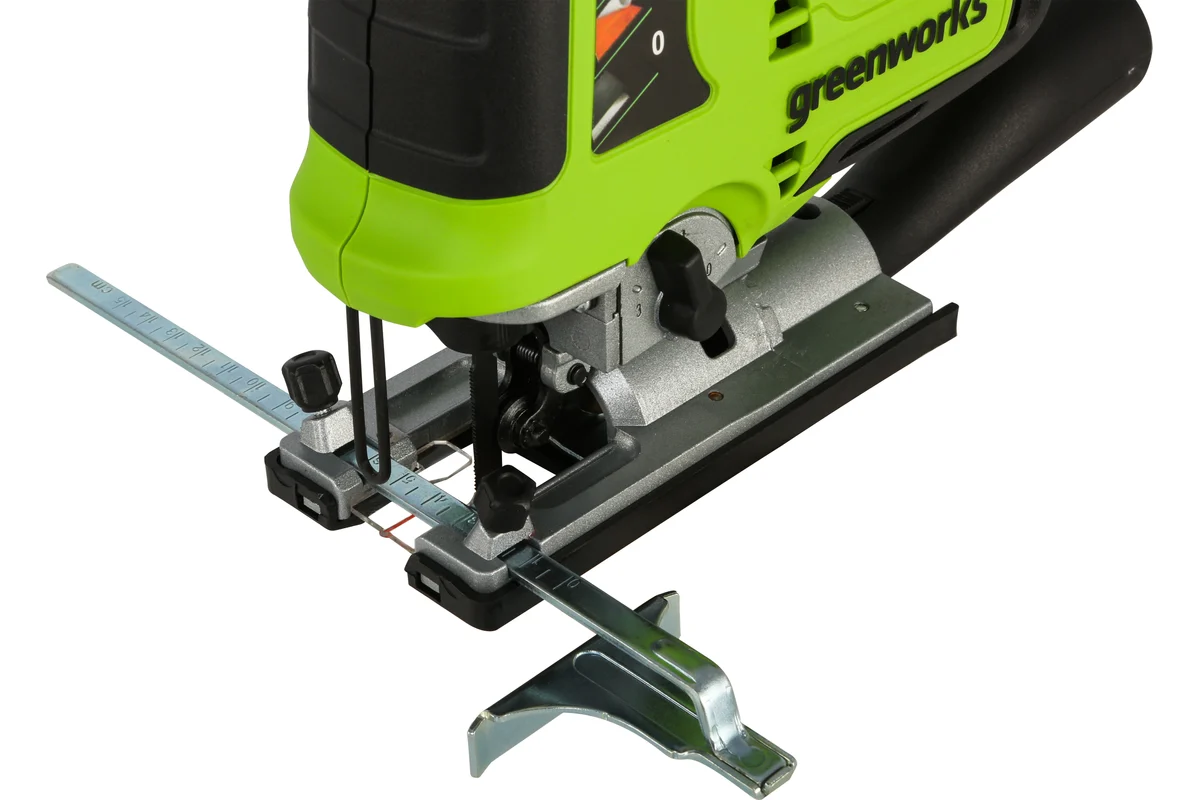 Greenworks 3601407 (GD24JS) – универсальный инструмент в отделочных и сборочных работах: компактный с мощным бесщеточным двигателем для быстрой и точной резки древесины толщиной до 100 мм. Классическая форма рукоятки закрытого типа – для наилучшего контроля во время работы. Корпус покрыт нескользящим покрытием.