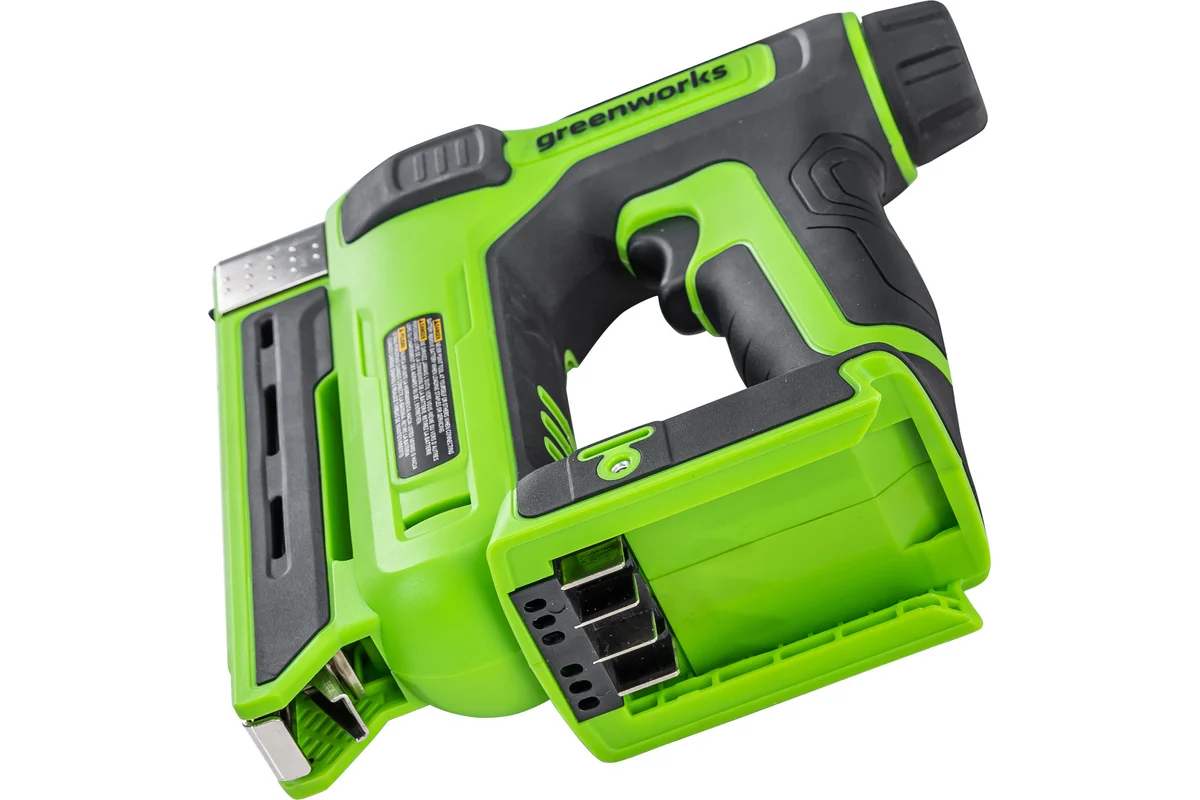 Гвозде-скобозабиватель (степлер) Greenworks G24CS10 предназначен для изготовления и сборки мебели, кровельных работ (крепление утеплителя/пароизоляции), обшивочных и отделочных работ, крепления напольных покрытий и т.д.
