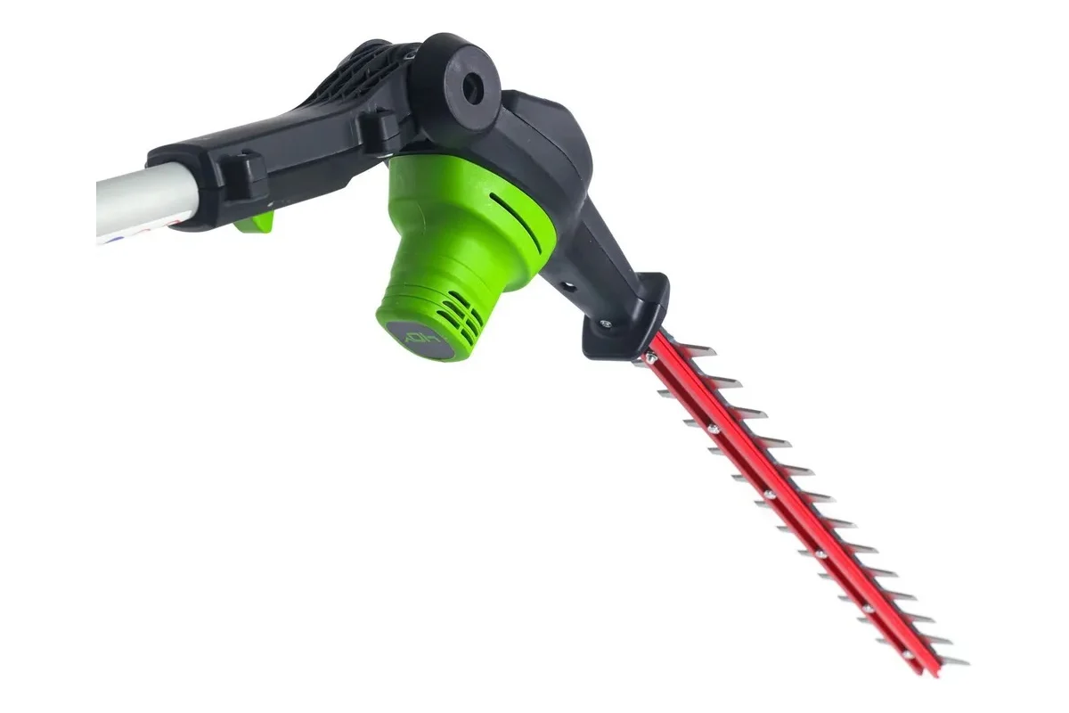 Высоторез-кусторез с регулируемой длиной (224 см или 288 см при использовании 2 или 3 секций штанги) позволяет безопасно работать с земли, без использования лестницы. Стальной нож 51 см с лазерной обработкой и алмазной заточкой поворачивается относительно штанги, обеспечивая точную обрезку ветвей до 30 мм толщиной при частоте 3000 резов/мин.