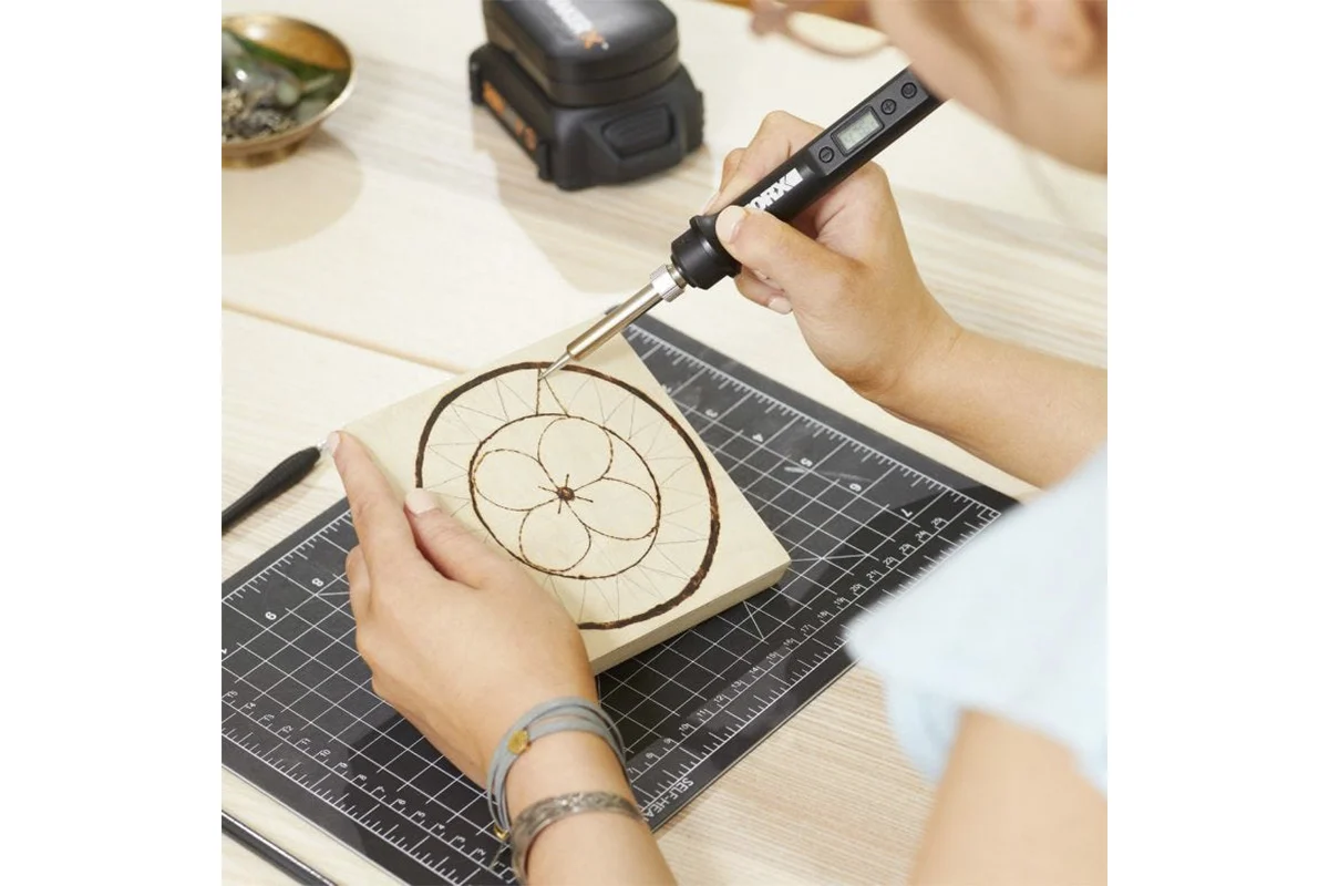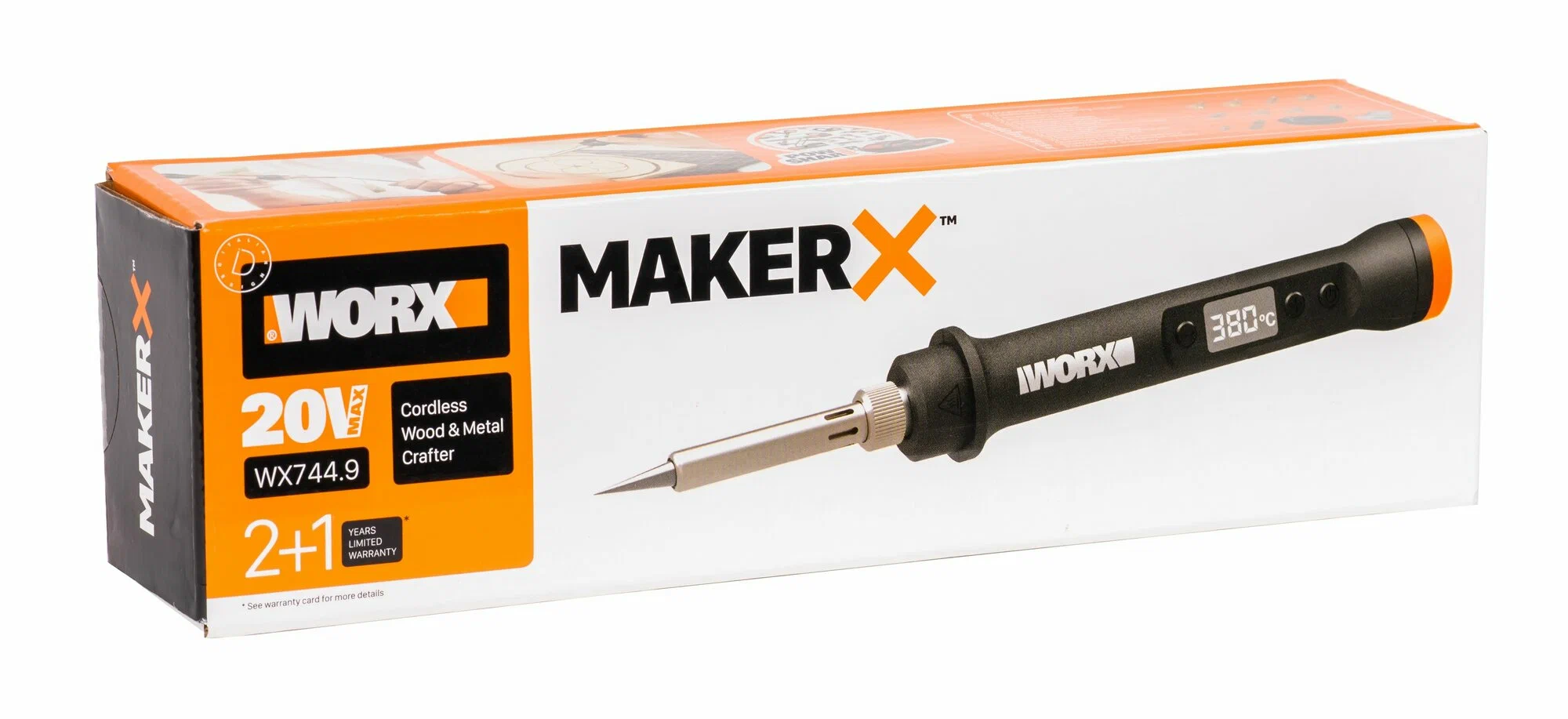 WX744.9 - аккумуляторный паяльник с функцией выжигания по дереву и металлу, входящий в семейство инструментов Maker X от WORX.