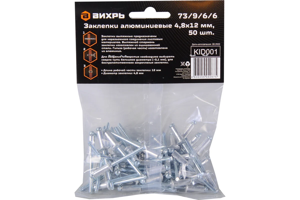 Технические характеристики заклепок Вихрь 4,8x12 мм
