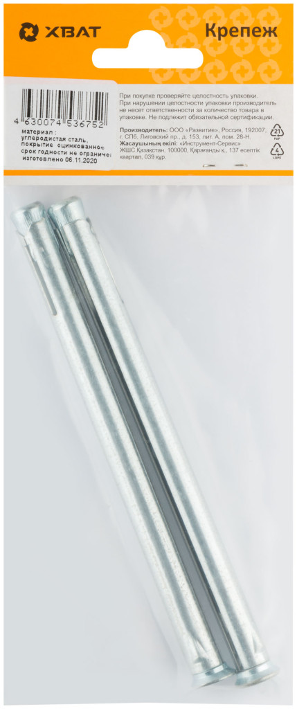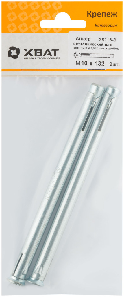 Анкер металлический для оконных и дверных коробок М10 х 132 (фасовка 2 шт.)