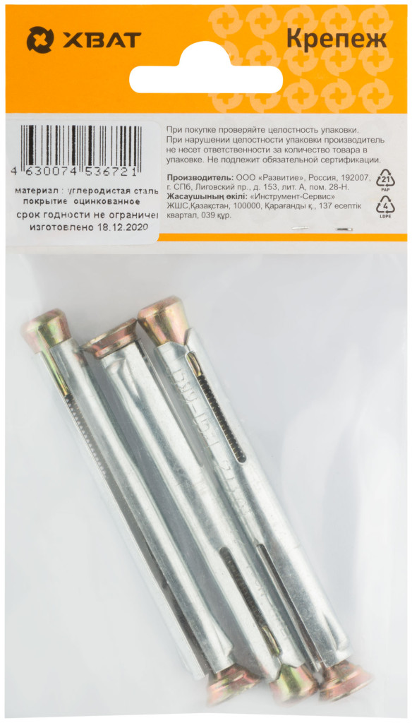 Анкер металлический для оконных и дверных коробок М10 х 72 (фасовка 3 шт.)