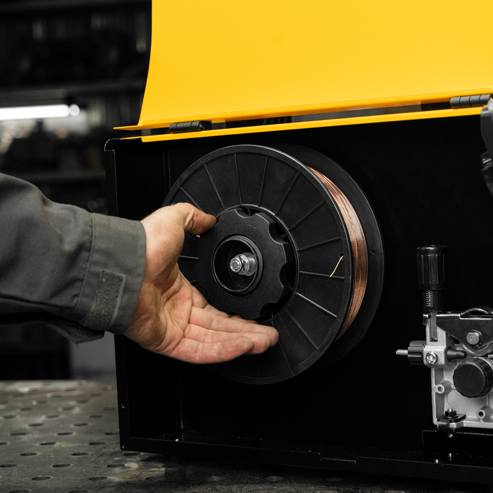 - Работа на удалении от аппарата и в труднодоступных местах — предусмотрена возможность использования горелки со встроенной катушкой сварочной проволоки (Spool gun).