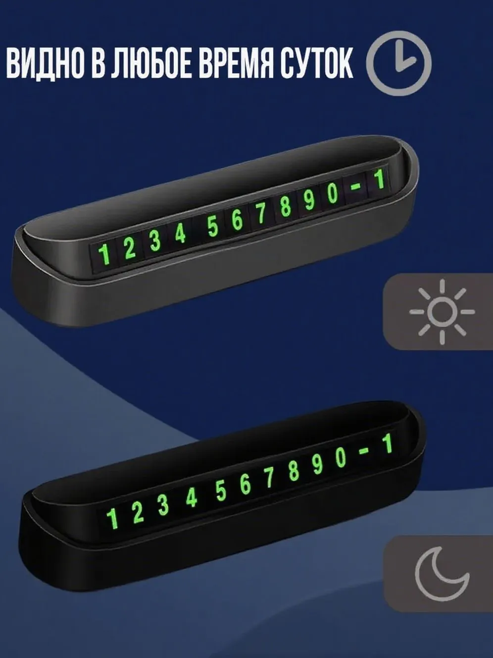 Автовизитка светится в темноте, благодаря нанесению люминесцентных смесей на цифры. Это позволяет пользоваться ею в любое время суток