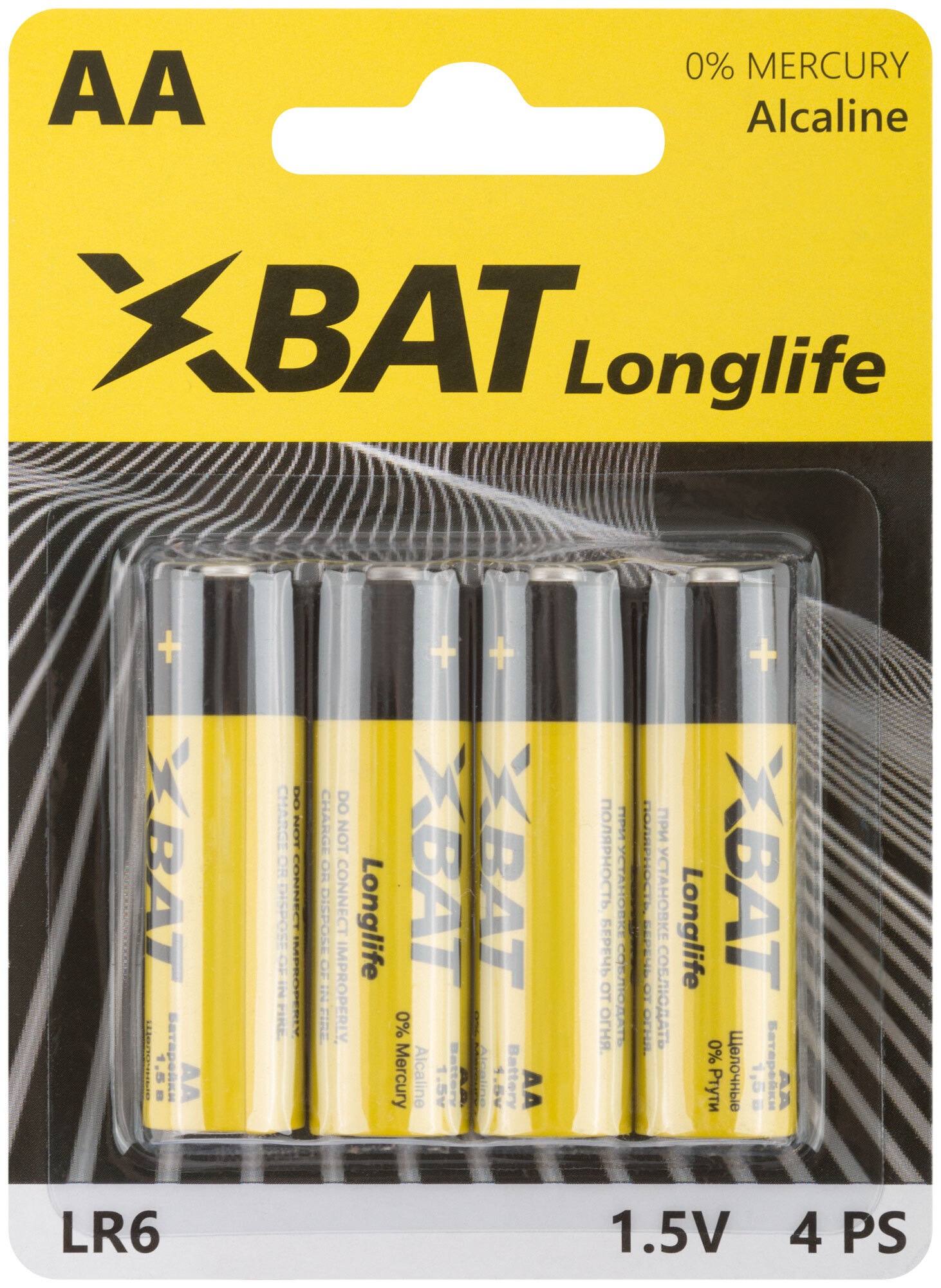 Батарейка щелочная, 1.5 В, тип АА, 4 шт. LR6-4BPC ХВАТ
