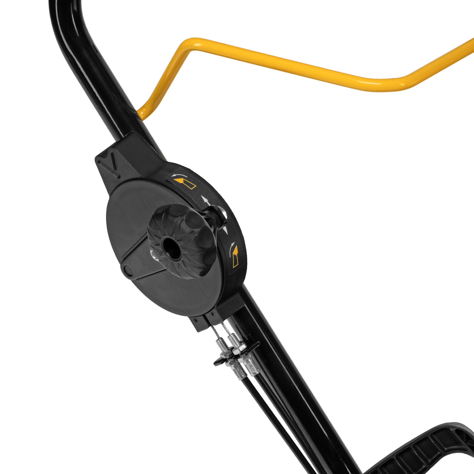 - Удобное управление — поворот желоба осуществляется при помощи тросового механизма, наклон дефлектора регулируется вручную.