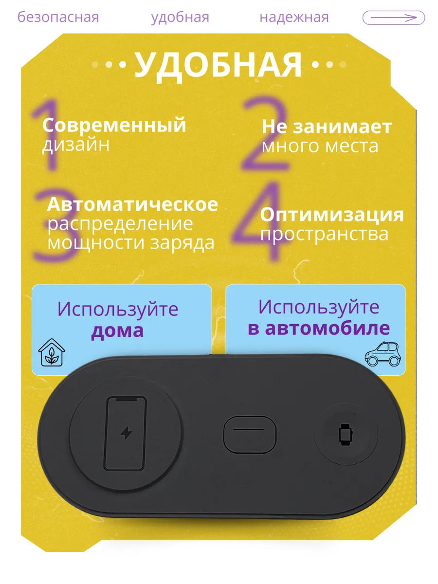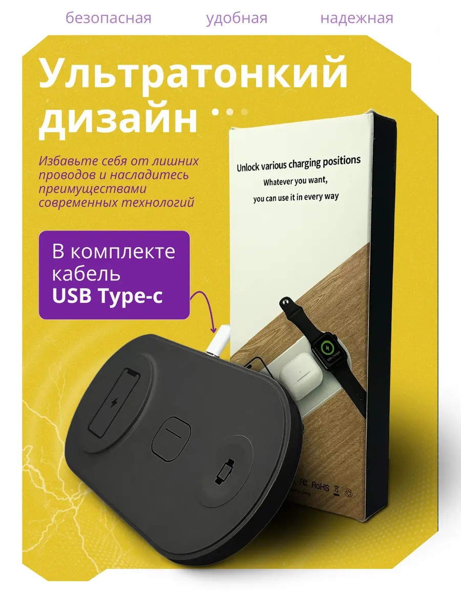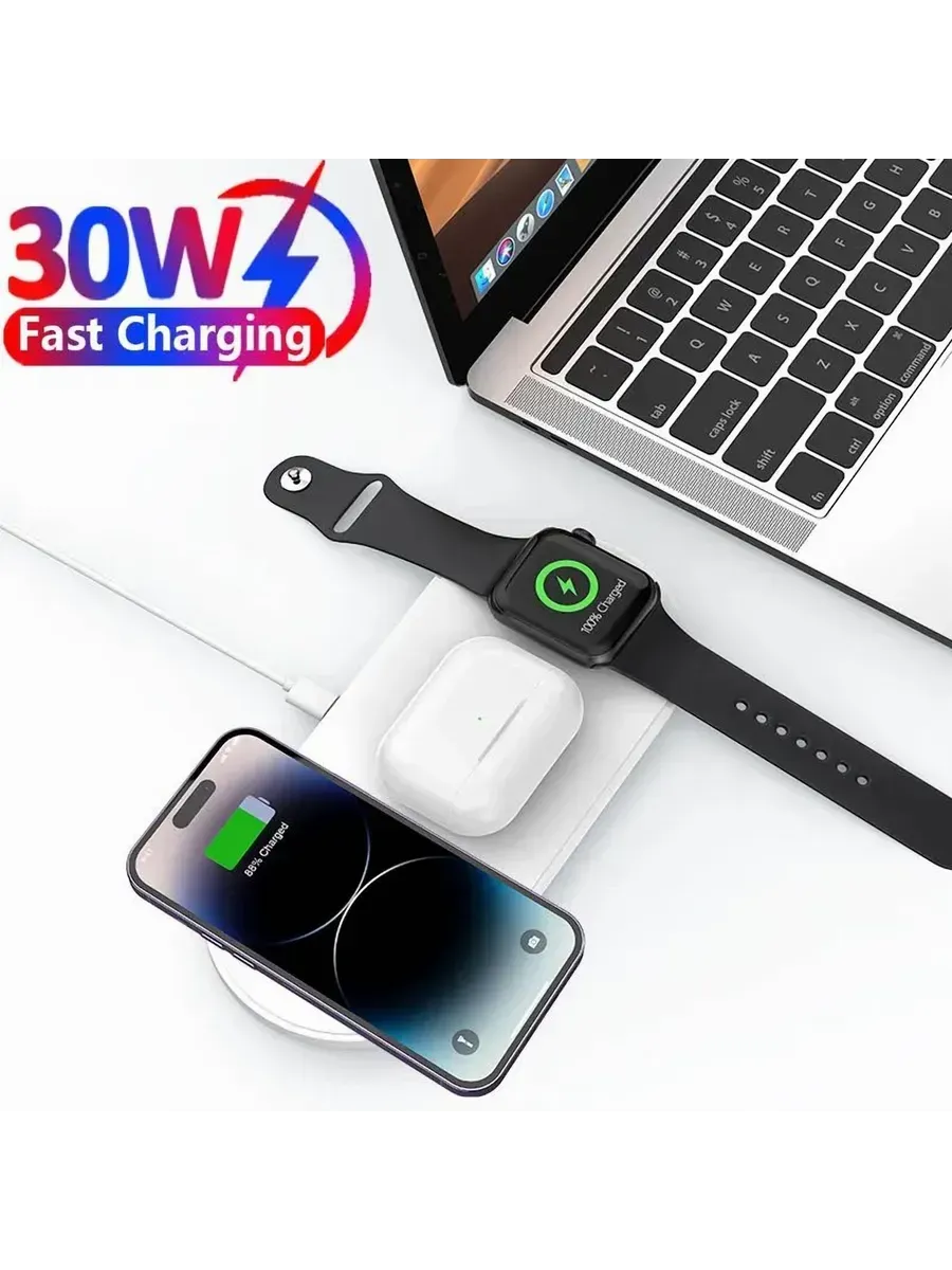 Представляем вам беспроводную зарядку 3 в 1, идеальное решение для современных пользователей устройств. Это универсальное зарядное устройство создано для обеспечения быстрой и удобной зарядки ваших мобильных устройств без лишних проводов. С его помощью вы сможете легко и просто подзарядить смартфон и смарт-часы одновременно. Данная модель поддерживает высокую скорость передачи энергии, что позволяет зарядить ваши устройства в кратчайшие сроки. Встроенная защита от перегрева и короткого замыкания гарантирует безопасность использования, а элегантный дизайн гармонично впишется в любой интерьер. Беспроводная зарядка 2 в 1 подходит для большинства моделей смартфонов, поддерживающих беспроводное зарядное устройство, обеспечивая удобство и доступность. С помощью этого зарядного устройства вы избавитесь от путаницы с кабелями и сможете с комфортом пользоваться своими гаджетами. Эта модель станет отличным дополнением к вашему рабочему пространству или идеальным подарком для близких. Надежная и компактная, беспроводная зарядка 2 в 1 — это современное решение для тех, кто ценит удобство и инновации.
