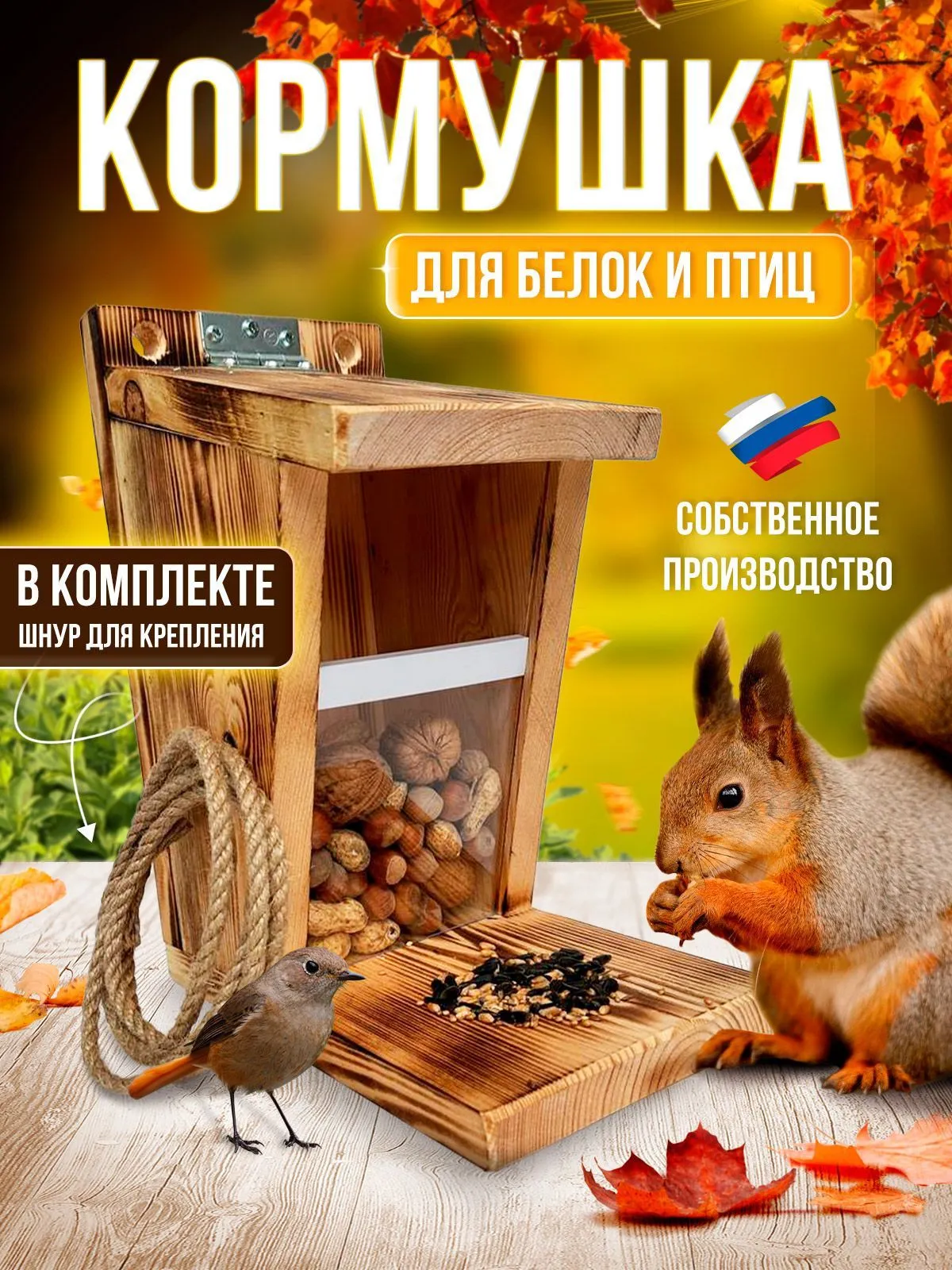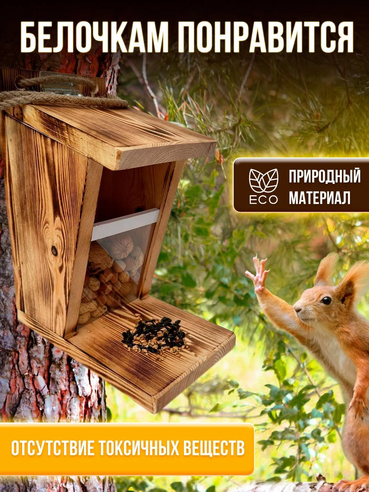 Кормушка для белок и птиц из массива дереваИщете милую и экологически-дружелюбную кормушку для белок? Тогда наша деревянная кормушка - идеальный выбор!