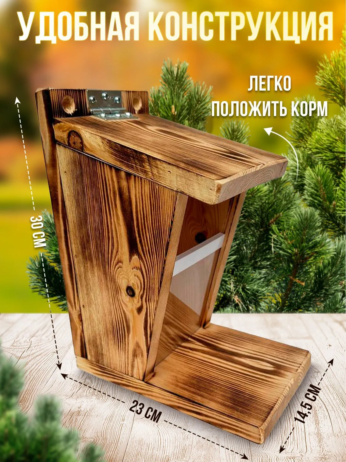 Наша кормушка изготовлена из высококачественного дерева, что придает ей естественный и привлекательный вид. Она не только функциональна, но и станет прекрасным украшением вашего сада или двора.