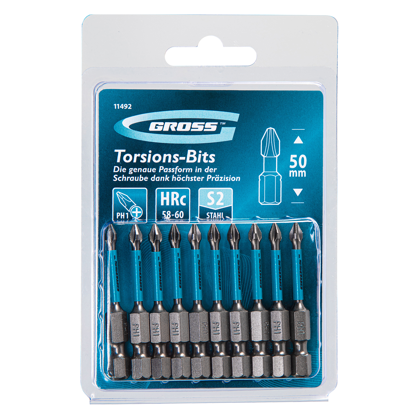 Набор торсионных бит PH1 x 50 мм Gross 11492, 10 шт., предназначен для монтажа и демонтажа резьбовых соединений с помощью ударного шуруповерта. Он незаменим в строительных, слесарных и монтажных работах, в автосервисах, при проведении ремонта в доме. Торсионная зона способна пружинить, за счет чего она частично амортизирует тангенциальный удар от шуруповерта. Такое решение позволяет равномерно распределить нагрузку по бите и избежать поломки шлица.