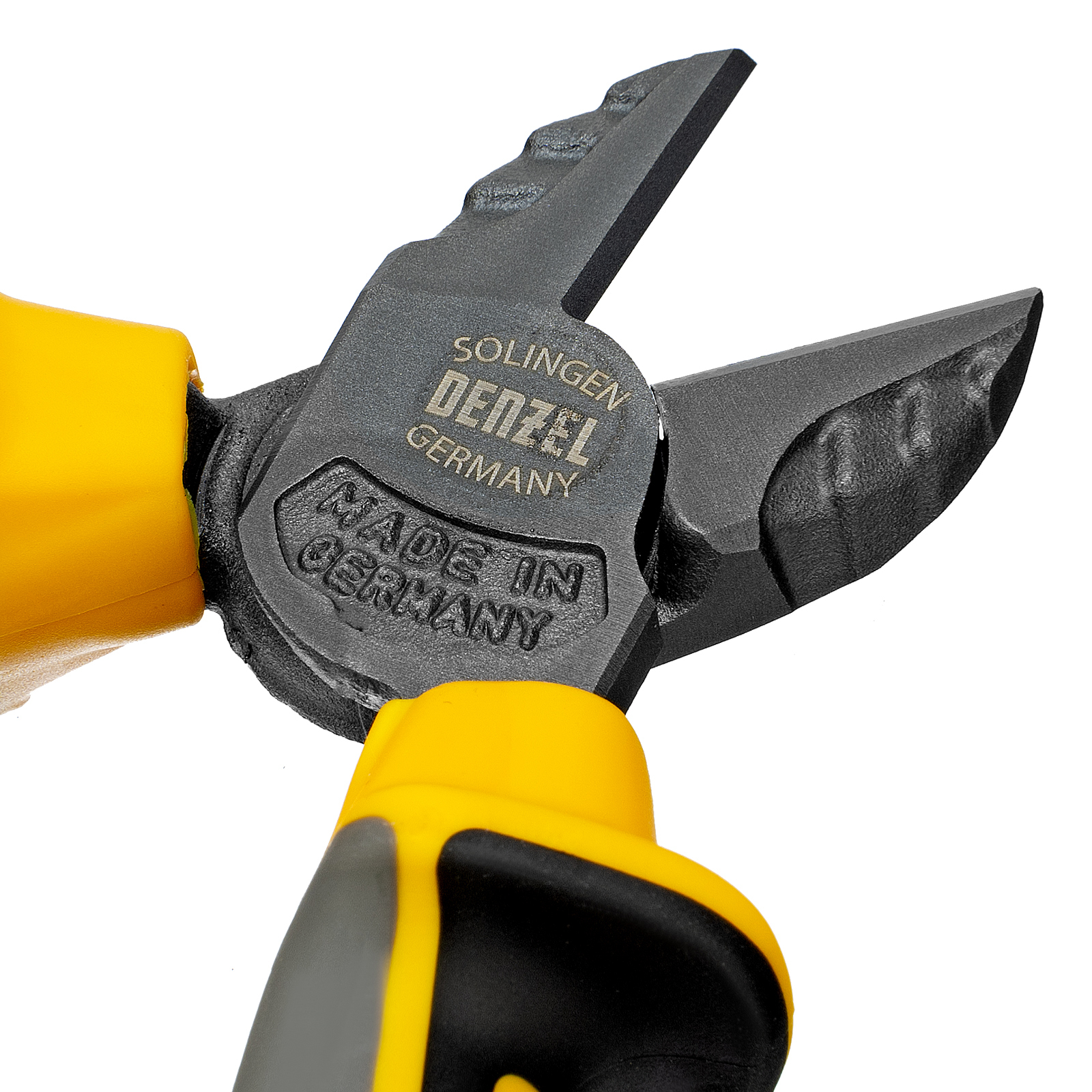 Бокорезы Denzel 17782 длиной 180 мм, с трехкомпонентными рукоятками, предназначены для разрезания кабелей из алюминия и меди, а также проволоки и стяжек. Максимальный диаметр перерезаемой мягкой проволоки (алюминиевой, медной, с пределом прочности 220 Н/мм2) составляет 7 мм, проволоки средней жесткости и гвоздей (750 Н/мм2) — 4 мм, жесткой (1800 Н/мм2) — 2,5 мм. Бокорезы используются для проведения слесарных и монтажных работ. Шарнир смещен к режущим кромкам, что позволяет сэкономить 20% усилий и максимально эффективно решать поставленные задачи.