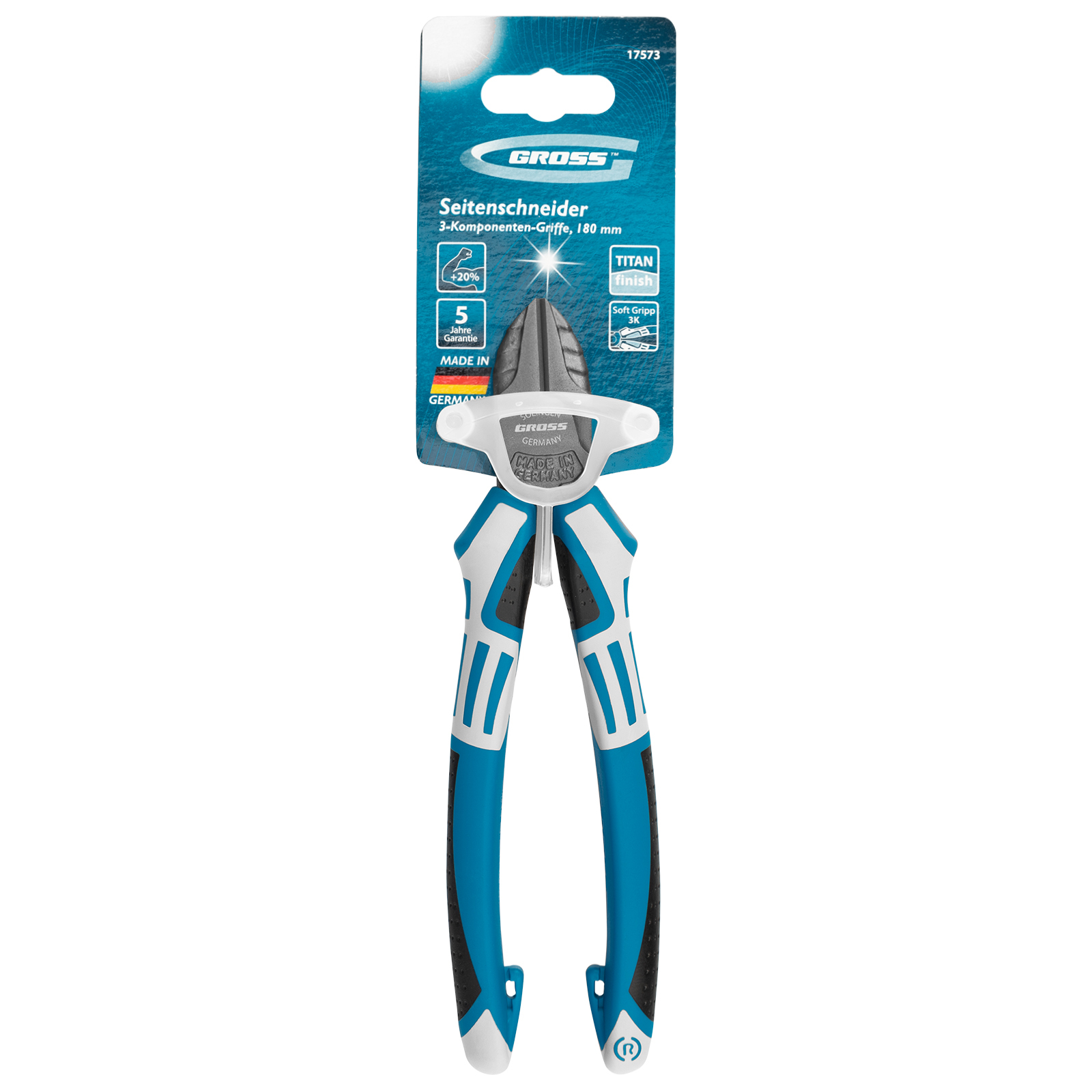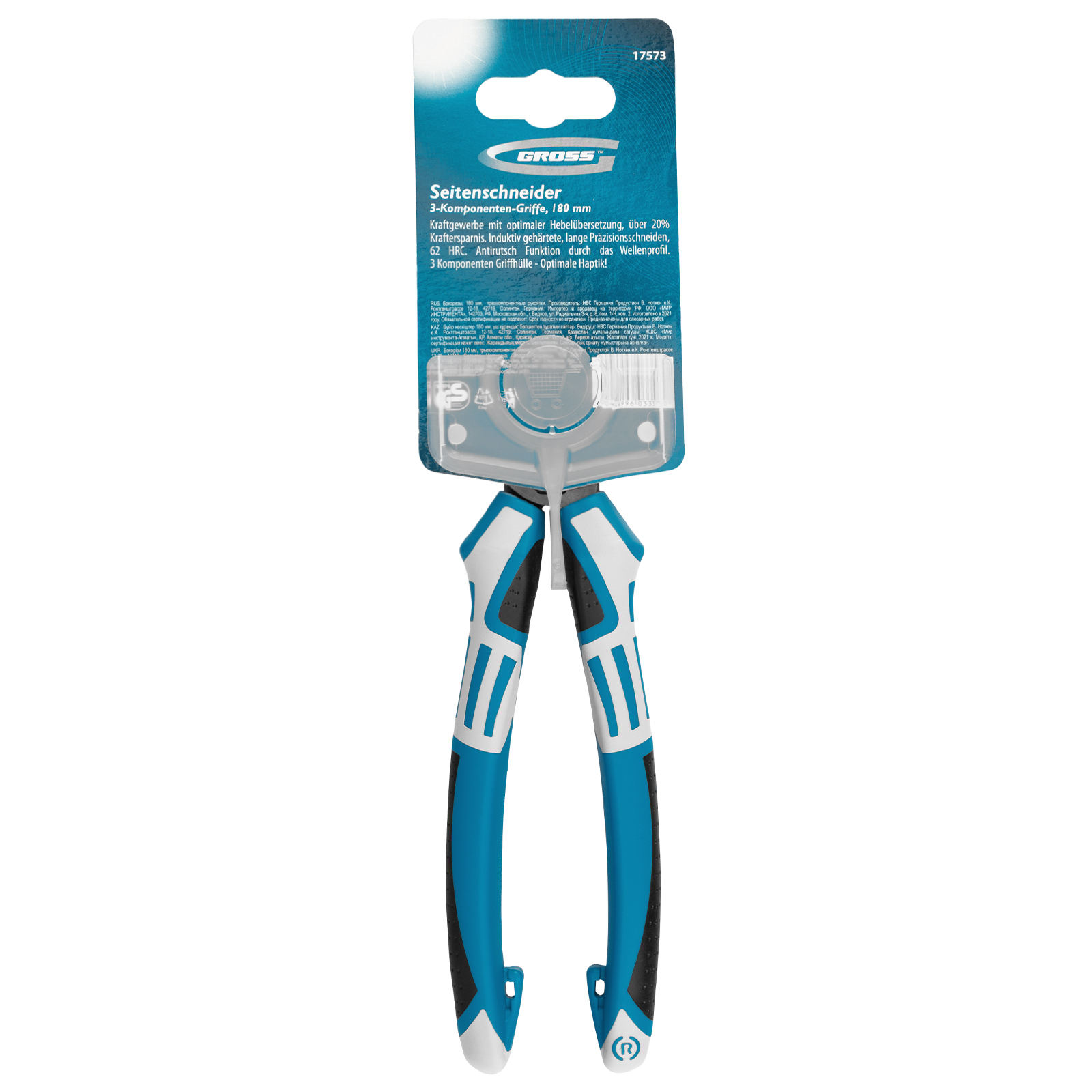 Бокорезы Gross 17573 длиной 180 мм, с трехкомпонентными рукоятками, предназначены для разрезания кабелей из алюминия и меди, проволоки, стяжек при проведении слесарных и монтажных работ. Конструкция шарнира, смещенного к режущим кромкам, позволяет сэкономить 20% усилий при решении поставленных задач.
