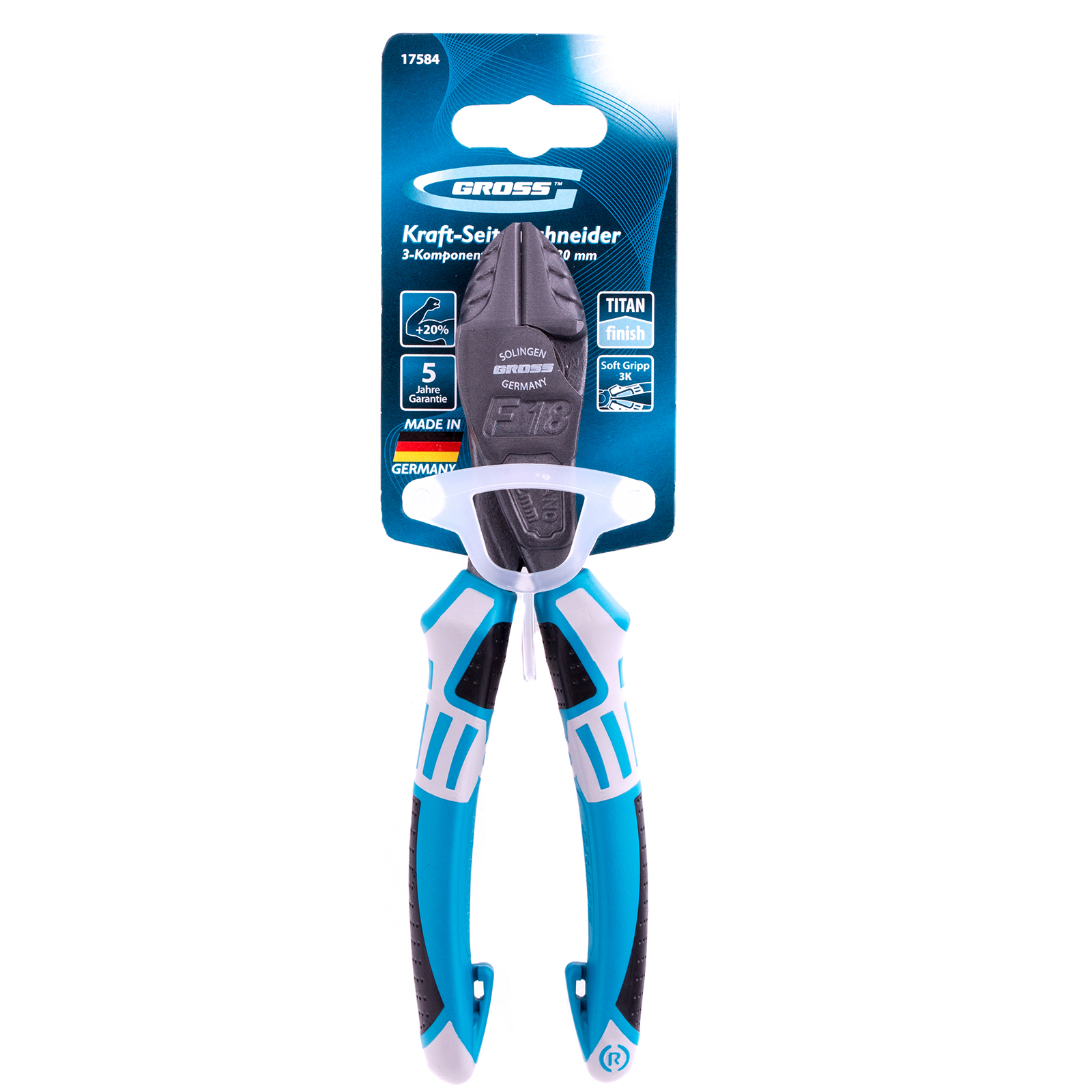 Усиленные бокорезы Gross 17584 длиной 180 мм, с трехкомпонентными рукоятками, предназначены для разрезания кабелей, проводов, проволоки, рояльных струн и т.д. Способны перекусывать не только алюминий, медь, пластмассу, но и более жесткие детали из стали диаметром до 3,7 мм. Встроенный рычажный механизм и смещенный непосредственно к режущим кромкам шарнир увеличивают усилие реза на 20%.