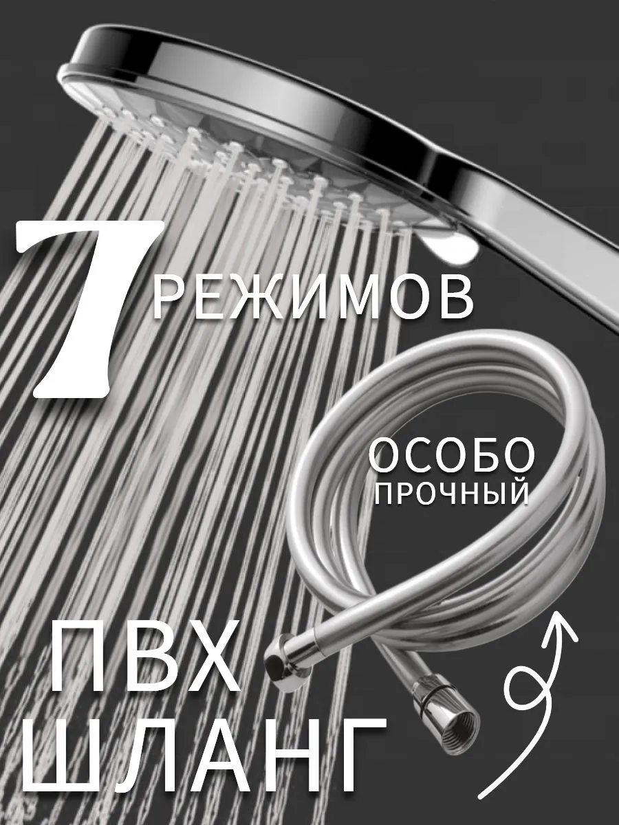 Большая 7 режимная лейка со шлангом ПВХ-матовый хром