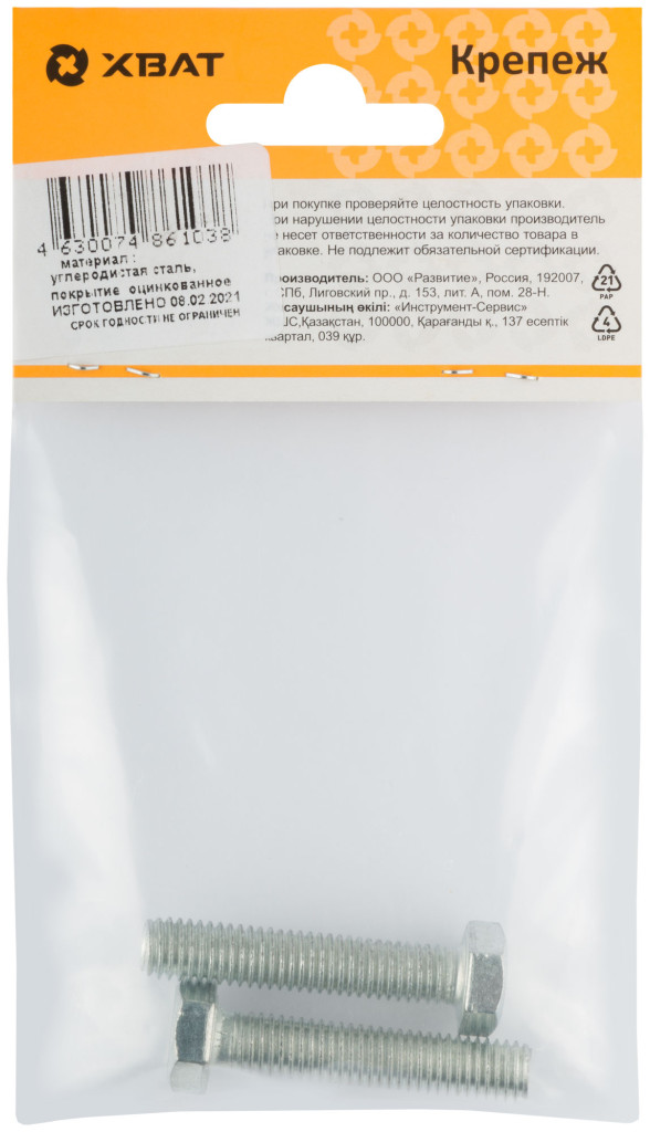 Болт изготовлен из конструкционной оцинкованной стали. Класс прочности 5.8. Рекомендуются для крепления и соединения узлов и деталей в машиностроении, строительстве. Позволяет быстро и качественно произвести монтаж.