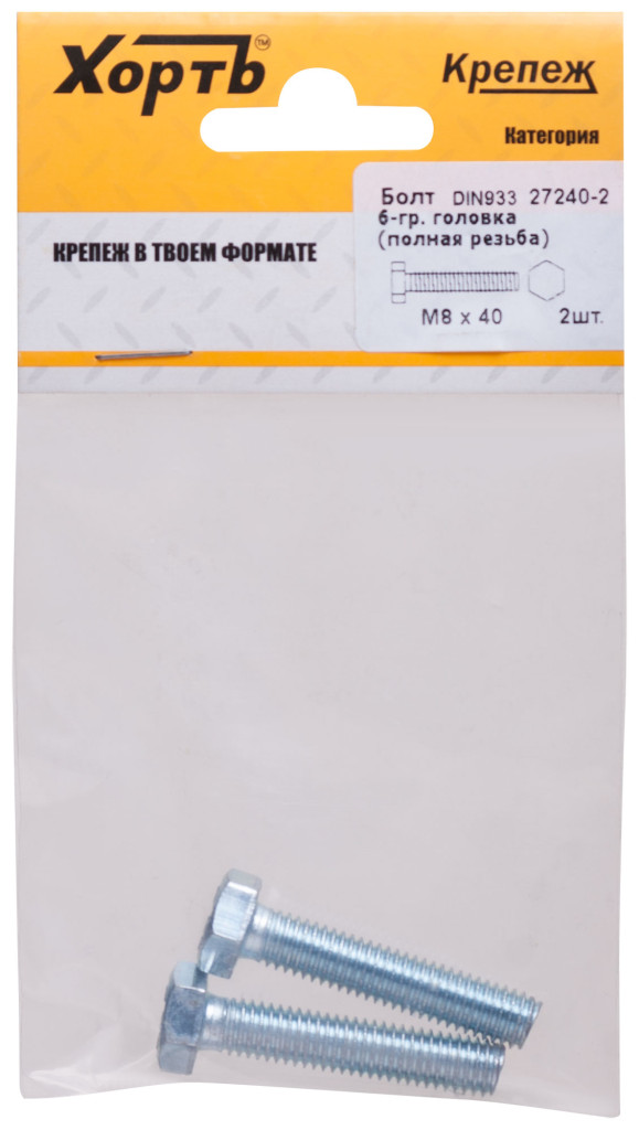 Болт 6-гранная головка (полная резьба) din933 М8 х 40 (фасовка 2 шт.)