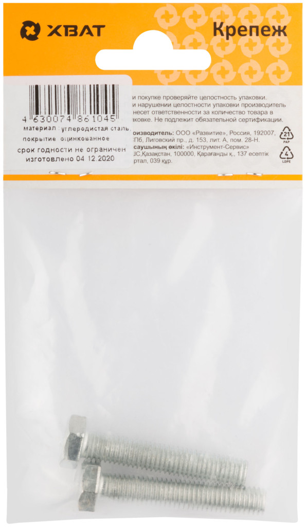Болт изготовлен из конструкционной оцинкованной стали. Класс прочности 5.8. Рекомендуются для крепления и соединения узлов и деталей в машиностроении, строительстве. Позволяет быстро и качественно произвести монтаж.