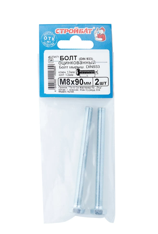 Предназначены для создания разъемного соединения при помощи гайки или резьбового отверстия в одной из соединяемых деталей. Имеют полную резьбу по всему стержню и шестигранную головку под ключ на 13 мм. Цинковое покрытие защищает от коррозии.
