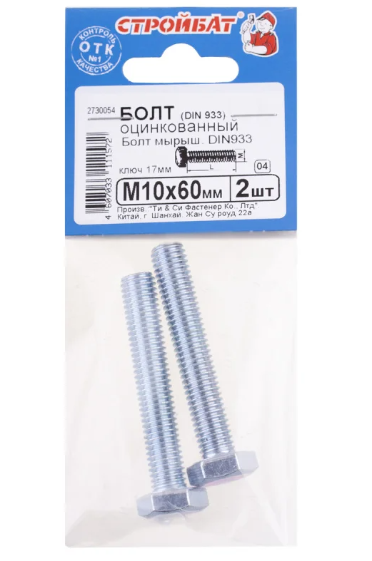 Болт DIN 933 М10x 60 (белый цинк 2 шт) 047731