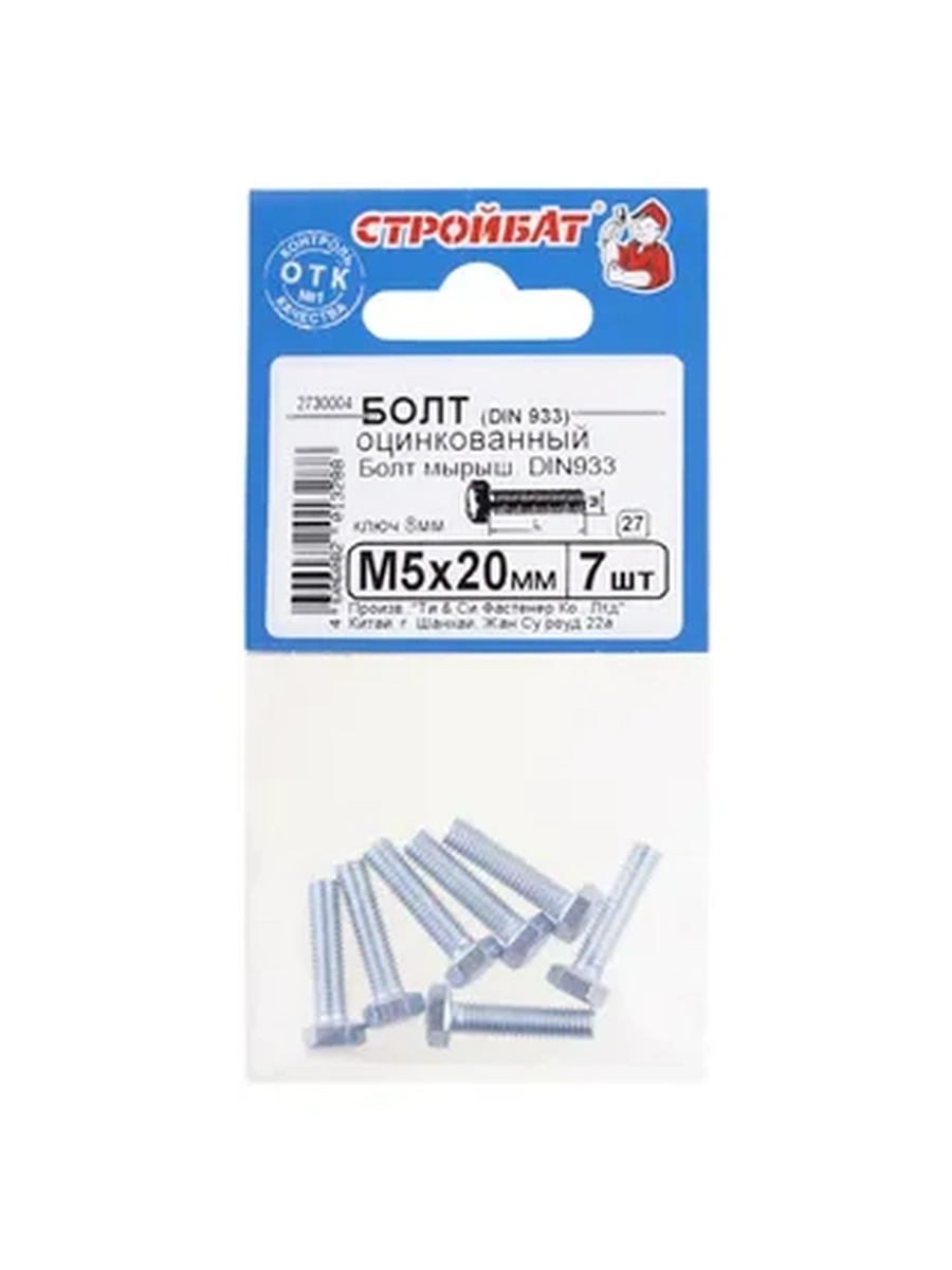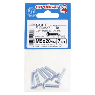 Болт DIN Стройбат 933 М 5x20 белый цинк, 7 шт.