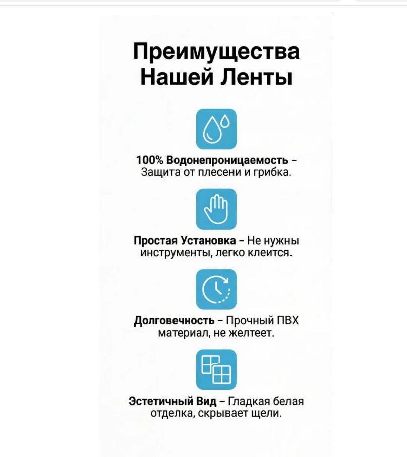 Бордюрная лента — это идеальное решение для поддержания чистоты и порядка в вашем доме. Помогает в герметизации стыков и швов защищая от попадания воды. Бордюрная лента имеет ширину 6см.Белый цвет бордюра позволяет скрывать неровности. Благодаря самоклеящейся основе легко крепится и надёжно держится на любых поверхностях. Бордюрная лента прекрасно подходит для оформления любого уголка в ванной комнате. Придает чистый и аккуратный вид. Плинтус для ванны будет отлично смотреться в вашем интерьере.