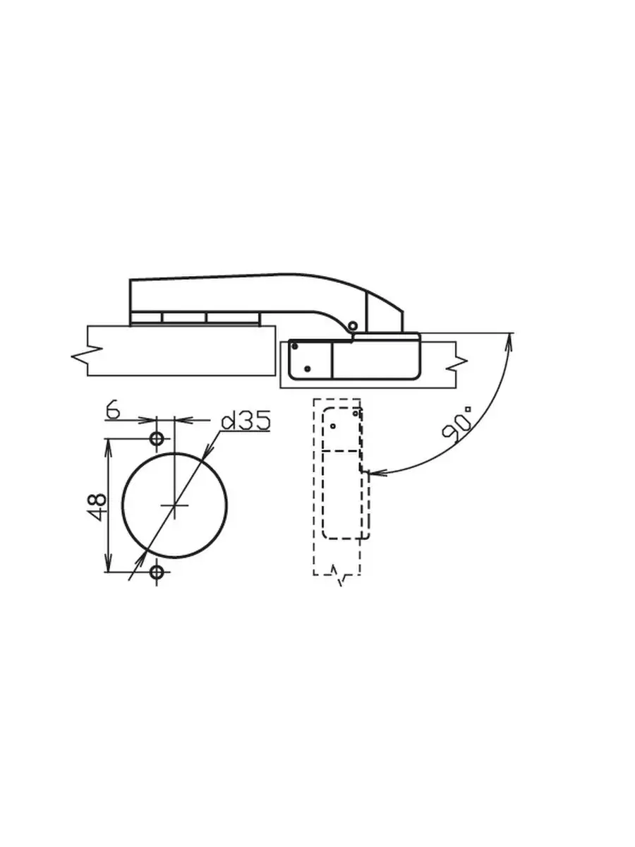 Тип петли: Slide-on. Диаметр чашки: 35 мм. Межцентровое расстояние: 48 мм. Вид крепежа чашки: под саморез. Угол установки: 180°