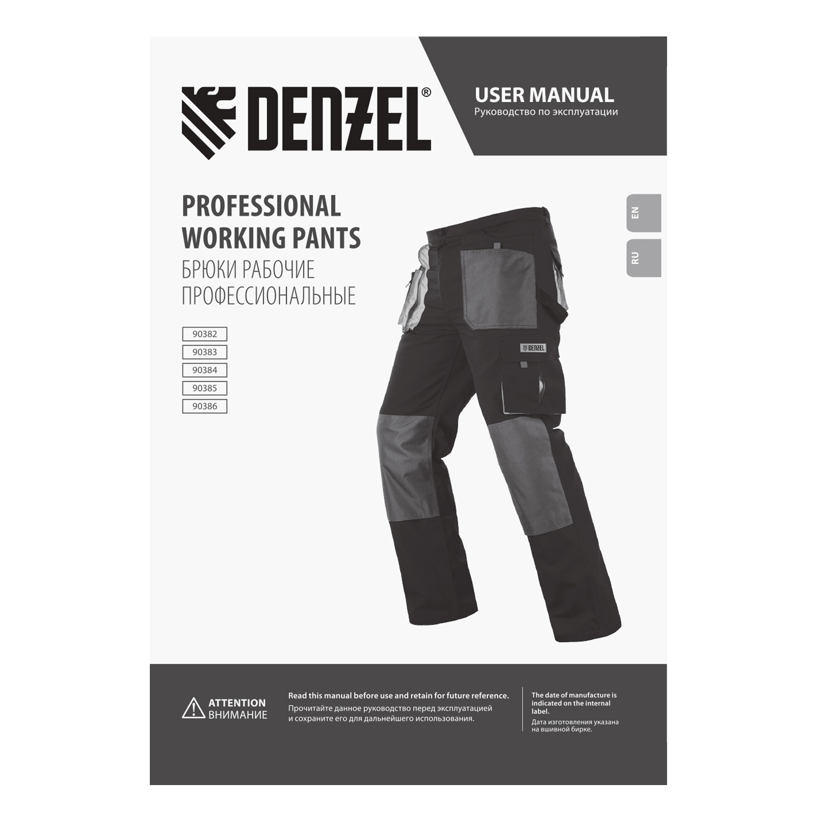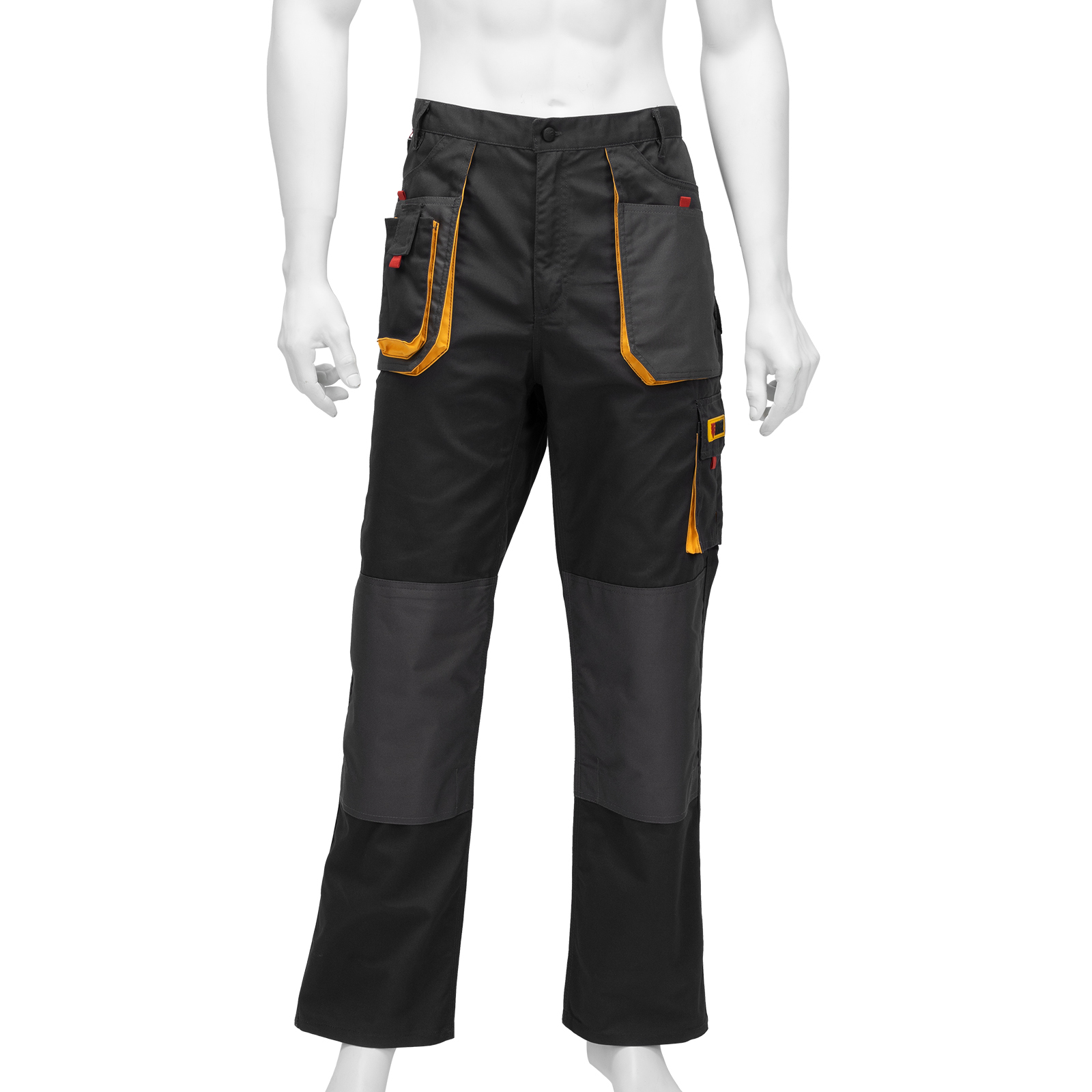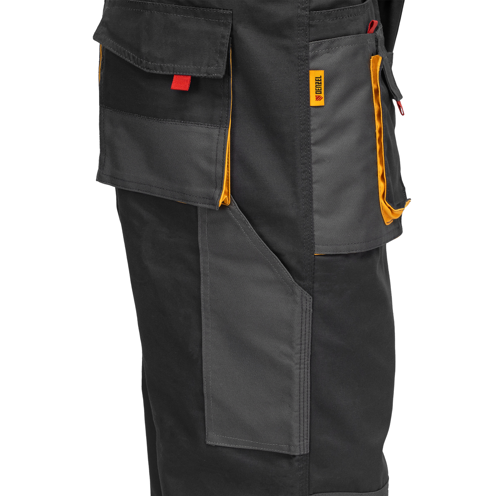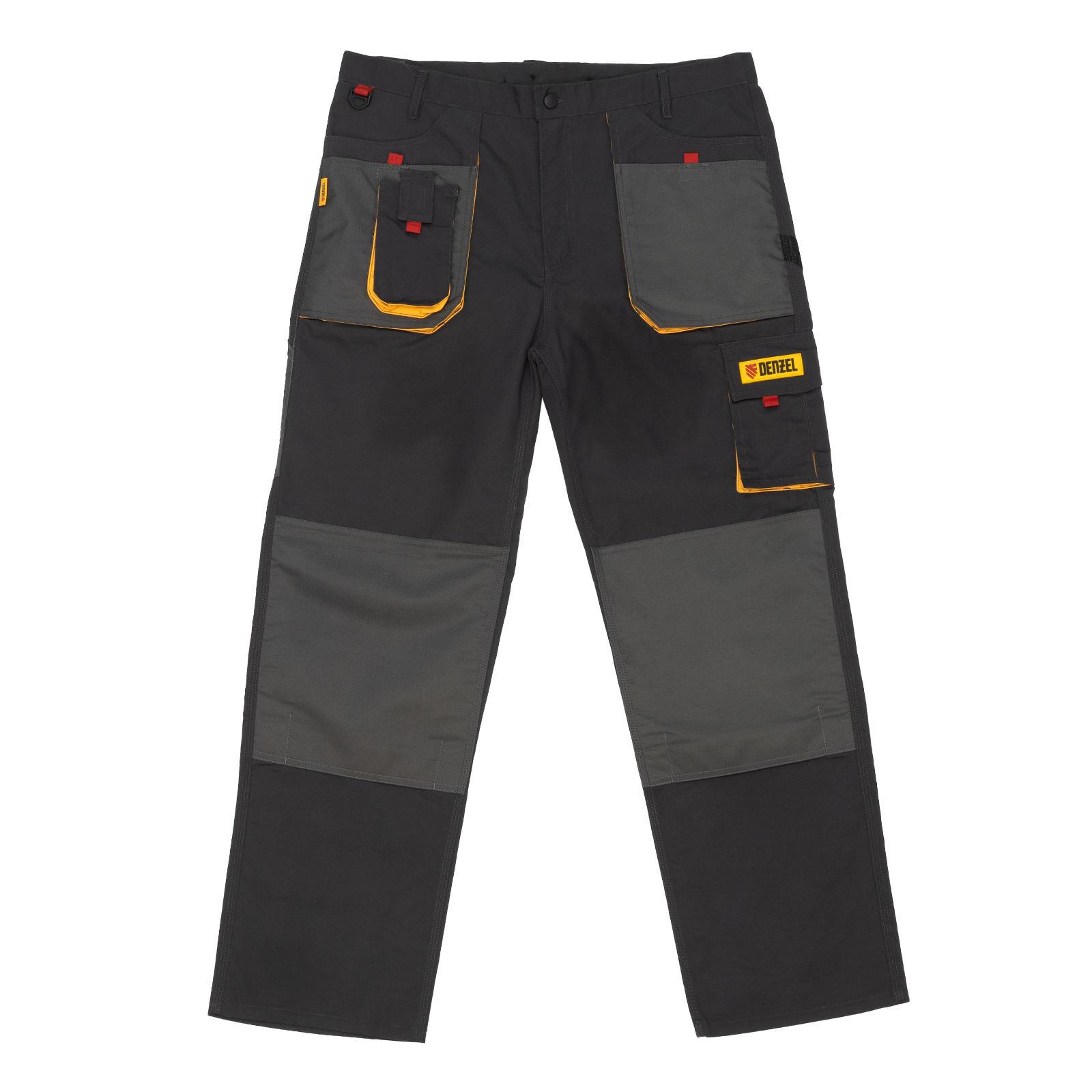 Рабочие брюки Denzel 90384 размера XL рассчитаны на рост 184-188 см и используются для выполнения профессиональных строительных, ремонтных, сантехнических и производственных работ в теплое время года или в отапливаемом помещении. Защищают пользователя от общих производственных загрязнений, нетоксичной пыли, ветра и незначительных механических воздействий. Изготовлены из ткани плотностью 260 г/м² (65% полиэстер, 35% хлопок). За счет наличия хлопковых волокон в составе ткань хорошо пропускает воздух и приятна на теле, полиэстер обеспечивает устойчивость к истиранию. Брюки выполнены в практичном темно-сером цвете.