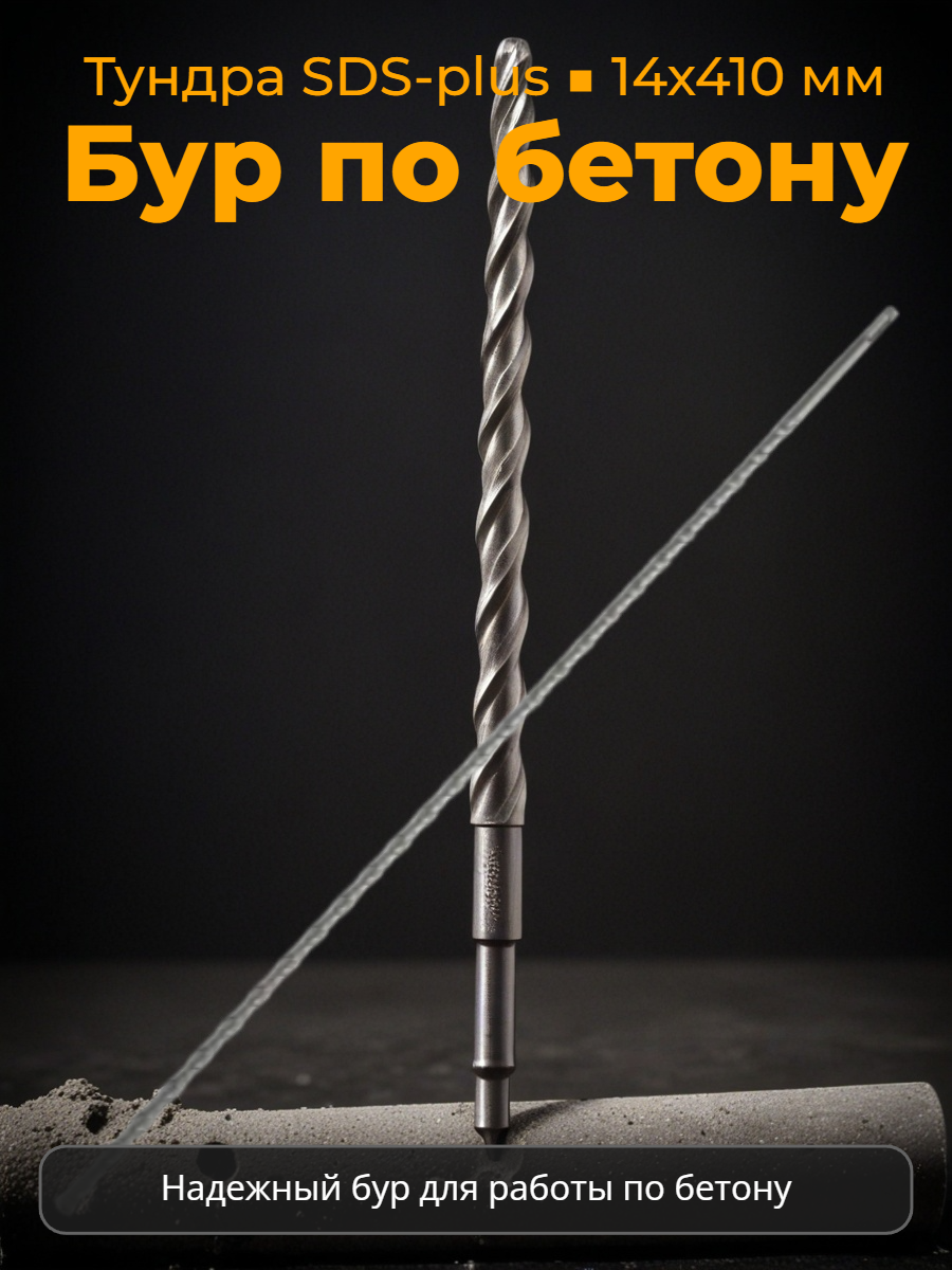Бур по бетону тундра, двойная спираль, SDS-plus, 14 х 410 мм