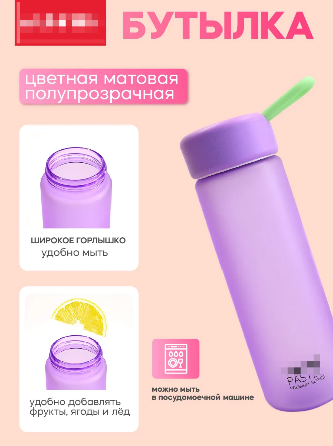 Бутылка для воды спортивная объемом 500 мл благодаря своей компактности и функциональности, становится идеальным выбором для людей, ведущих активный образ жизни. Бутылка изготовлена из поликарбоната с маркировкой PC5, что делает ее безопасной для здоровья. Поликарбонат — ударопрочный пластик, который не выделяет вредных веществ и не имеет запаха, даже при использовании горячих напитков. Крышка из полипропилена оборудована специальным уплотнителем из пищевого силикона и защищает от протекания, что делает бутылку идеальной для транспортировки в рюкзаке или сумке. Широкое горлышко бутылки облегчает не только процесс мытья, но и добавление ингредиентов. Вы можете добавлять фрукты, ягоды или лед. Бутылочку можно мыть в посудомоечной машине и разогревать в микроволновой печи без крышки. Силиконовая петля для переноски позволяет крепить к рюкзаку или сумке. Цветная матовая полупрозрачная поверхность с эффектом frost - бутылка не скользит в руке. С размерами 20,5x6,4x6,4 см она легко помещается в большинство стандартных подстаканников и карманов сумок. Бутылка предназначена не только для воды. Благодаря своей герметичности и устойчивости к высоким температурам, она подходит для горячих напитков — чая или кофе. Бутылка может быть использована во время прогулки по парку или путешествия в горы, на утренние пробежки и на длительные походы. Для школьников — это незаменимый аксессуар для занятий. Автомобилисты оценят компактный размер и возможность легко поставить бутылку в машине в подстаканник. Средний рекомендованный срок при интенсивном использовании – 1 год. Это экологичный продукт - одна бутылка заменяет 300 пластиковых бутылок (с учетом среднего ежедневного времени использования в течение года) Данная бутылка сертифицирована в России, что означает соответствие высоким стандартам качества и безопасности. Знак BPA Free подтверждает отсутствие в составе вредных химических веществ.