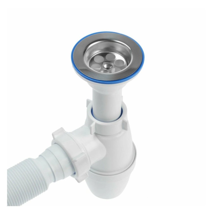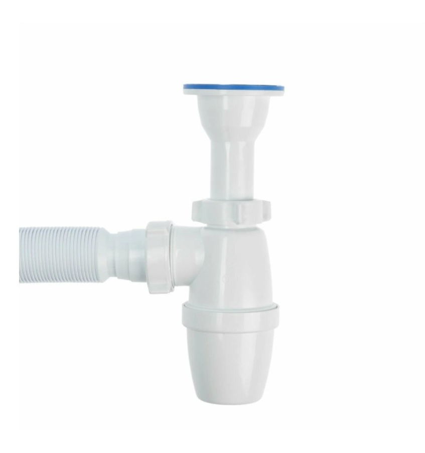 Бутылочный сифон ORIO малый корпус, с литым выпуском 1 1/2х40, с гибкой трубой 40-40/50 А-32019 с нержавеющей чашкой д.70мм и отводом в канализацию гибкой трубой 40-40/50. В комплекте идёт полированная нержавеющая чашка д.70мм. Сифон комплектуется нержавеющим винтом длиной 75мм и нержавеющей гайкой. Длина отвода в канализацию от 310 до 650мм. Отвод имеет два диаметра подключения к канализации 40 и 50мм.