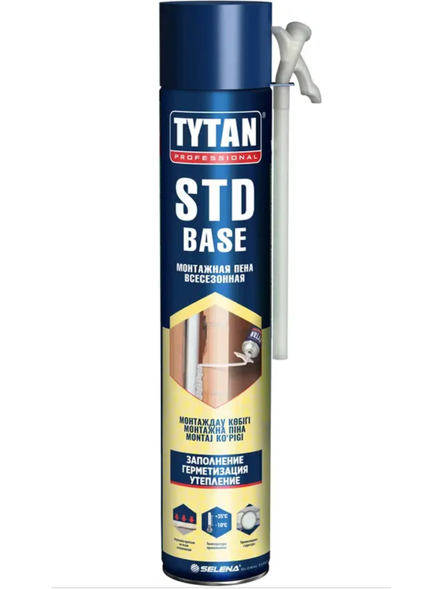Высококачественная бытовая полиуретановая пена STD BASE имеет широкий диапазон применения в строительстве и ремонте: заполнение различных трещин, щелей, пустот вокруг водопроводных труб, герметизация стыков потолка, стен и пола, герметизация швов при монтаже дверных блоков, герметизация швов при монтаже оконных блоков, теплоизоляция, звукоизоляция. Пена является всесезонной — может использоваться как летом, так и зимой.
