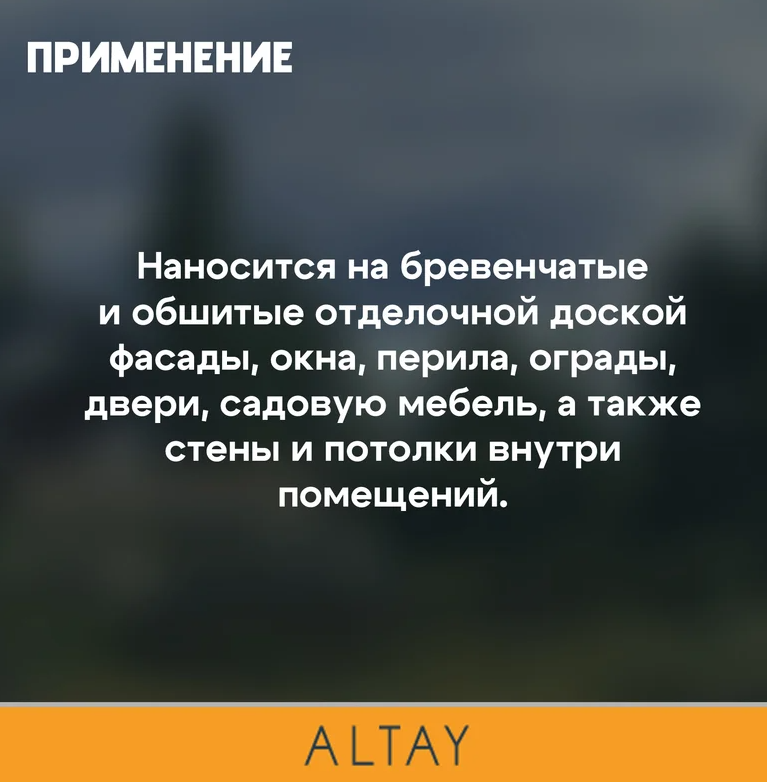 Область применения состава: Для беседок, Для дерева, Для заборов, Для террас, Для фасадов