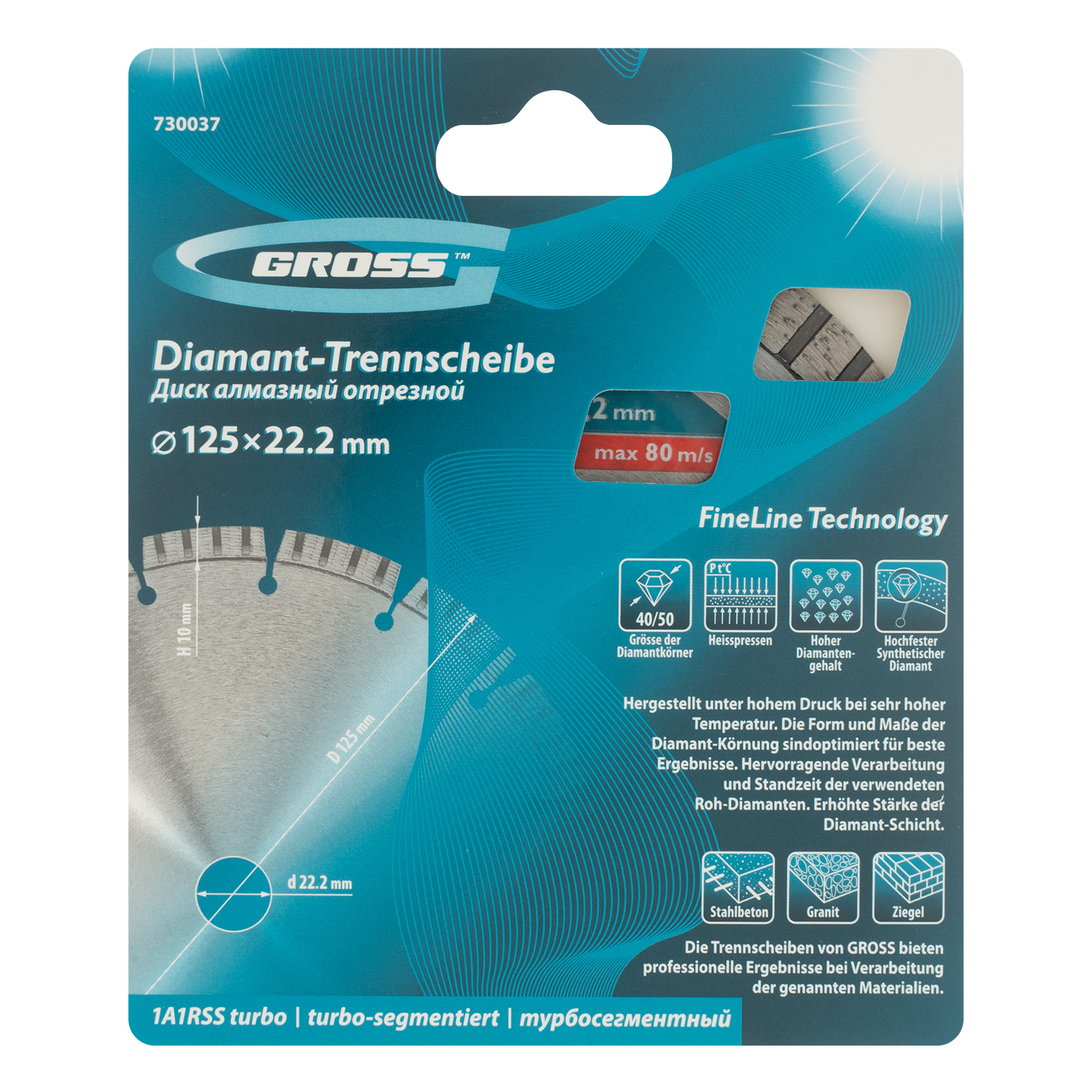 Алмазный диск Gross 730037 диаметром 125 х 22,2 мм, с лазерной приваркой турбо-сегментов, предназначен для сухой резки бетона, в том числе свежего, слабоармированного железобетона, кирпича, песчаника и гранита. Посадочный диаметр 22,2 мм позволяет использовать диск в качестве оснастки для УШМ. Турбо-сегментное строение обеспечивает быстрое сухое резание без необходимости водяного охлаждения. Благодаря оптимально подобранной связке диск выдерживает высокие нагрузки при выполнении большого объема работ. Подходит как для интенсивного бытового, так и для профессионального применения.