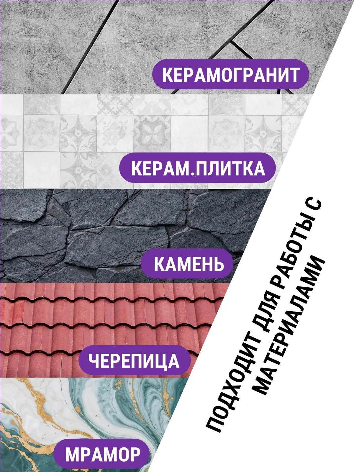 Подходит для работы с плиткой, керамогранитом, камнем, мрамором.