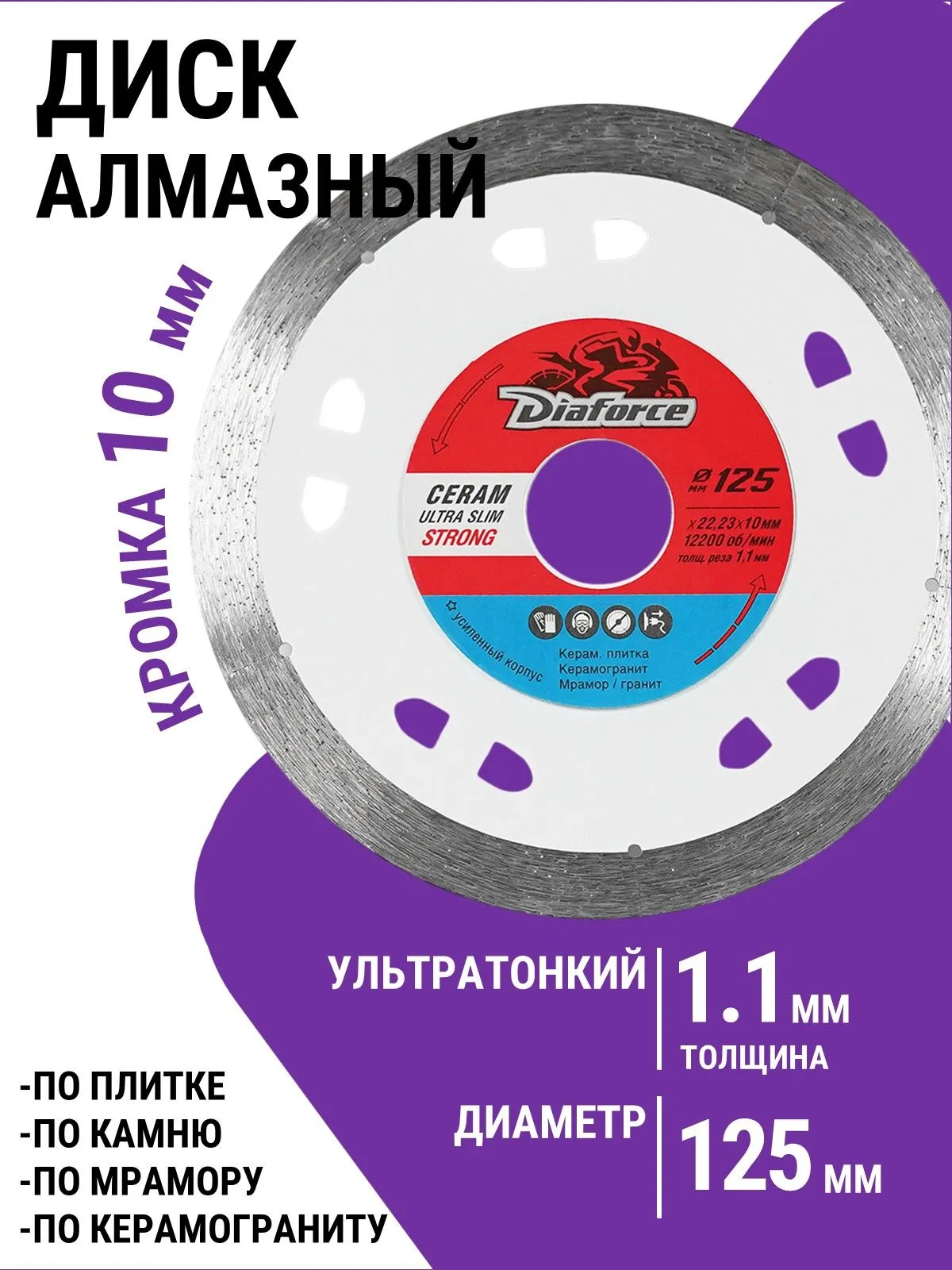 Диск алмазный сплошной CERAM ULTRA SLIM 125x22.23x6x1.1 мм, ультра-тонкий мокрый рез DIAFORCE 514125U