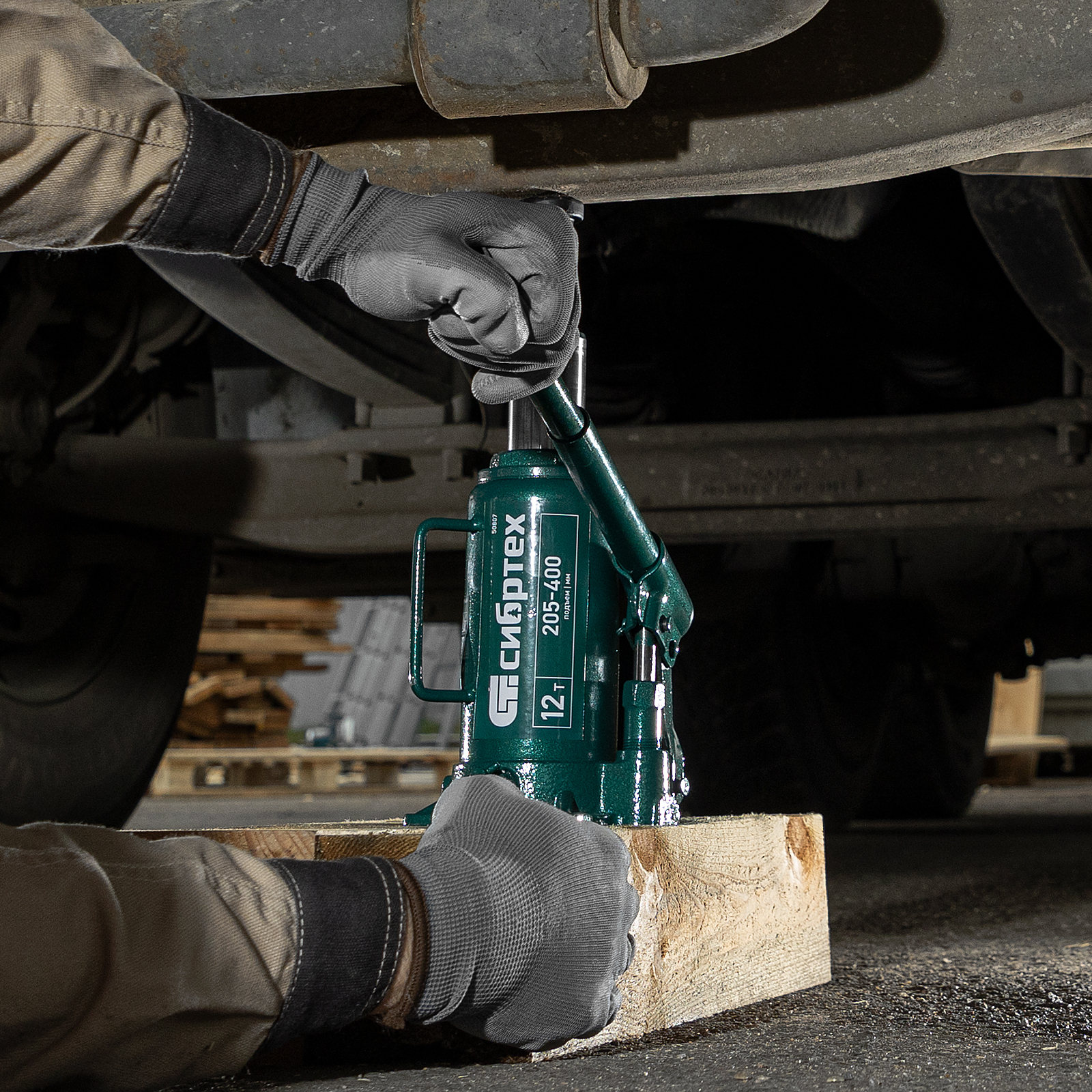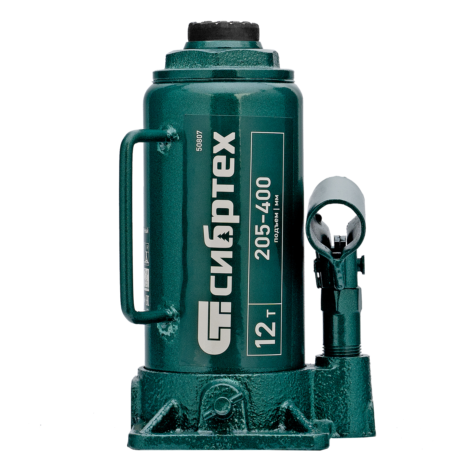 Домкрат гидравлический бутылочный Сибртех 50807 предназначен для подъема грузов массой до 12 т на высоту от 205 до 400 мм. Не требует больших усилий от пользователя и значительно облегчает рабочий процесс. Домкрат будет полезен при проведении техобслуживания машины в автосервисе или гараже.