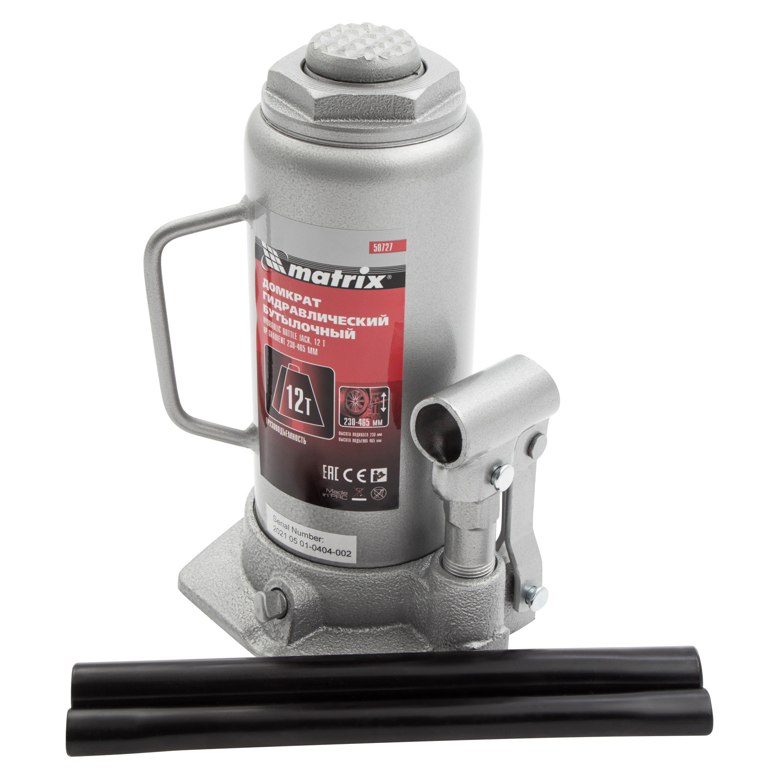Домкрат гидравлический бутылочный Matrix 50727 используется для поднятия грузов массой до 12 т на высоту 230-465 мм. Подходит для автомобилей с высоким клиренсом. Домкрат будет полезен автолюбителям в гараже и дороге, а также сотрудникам СТО.