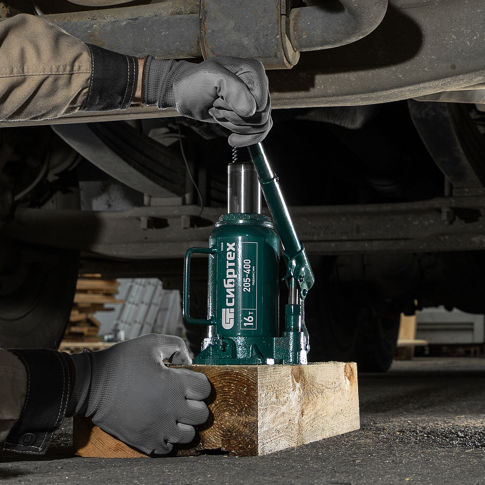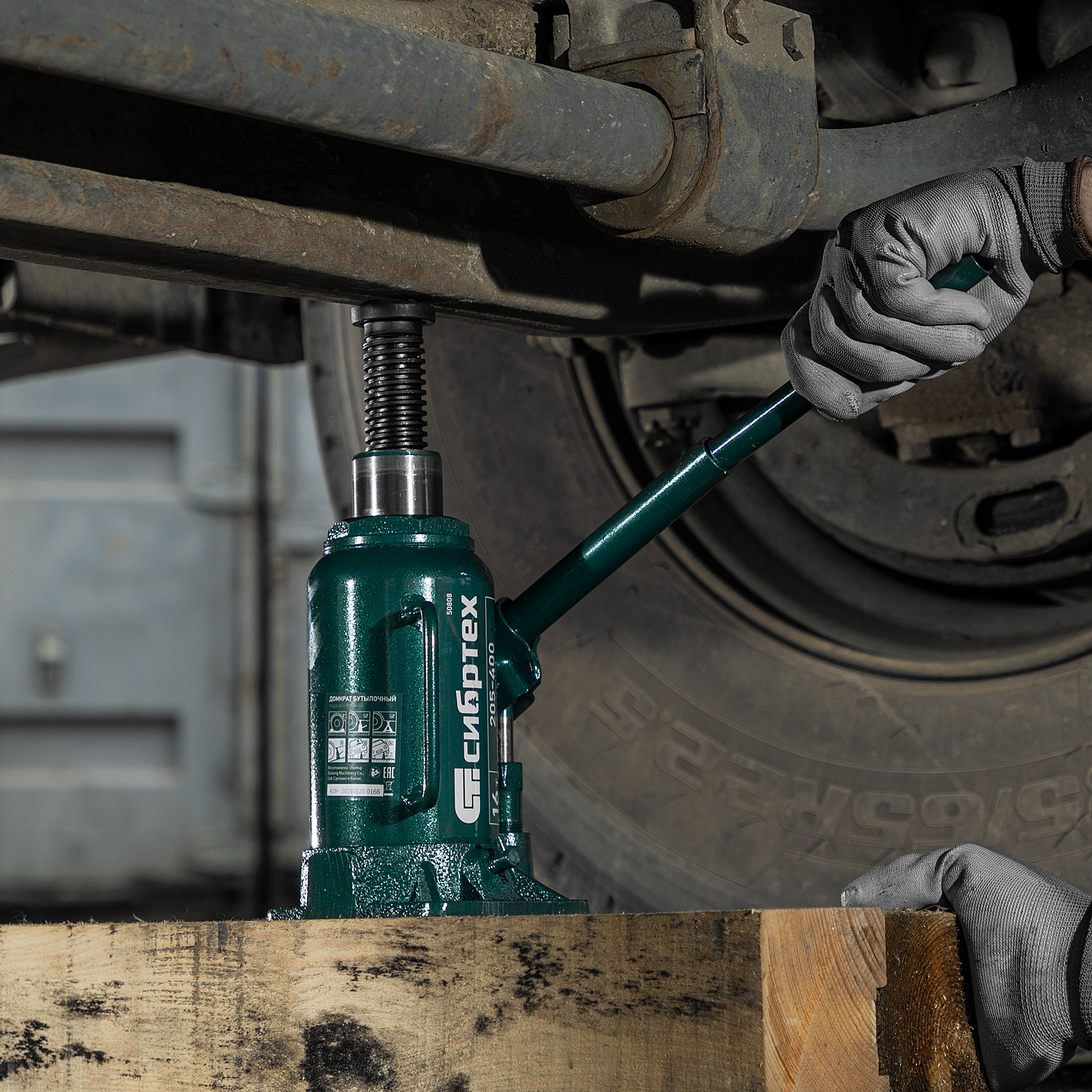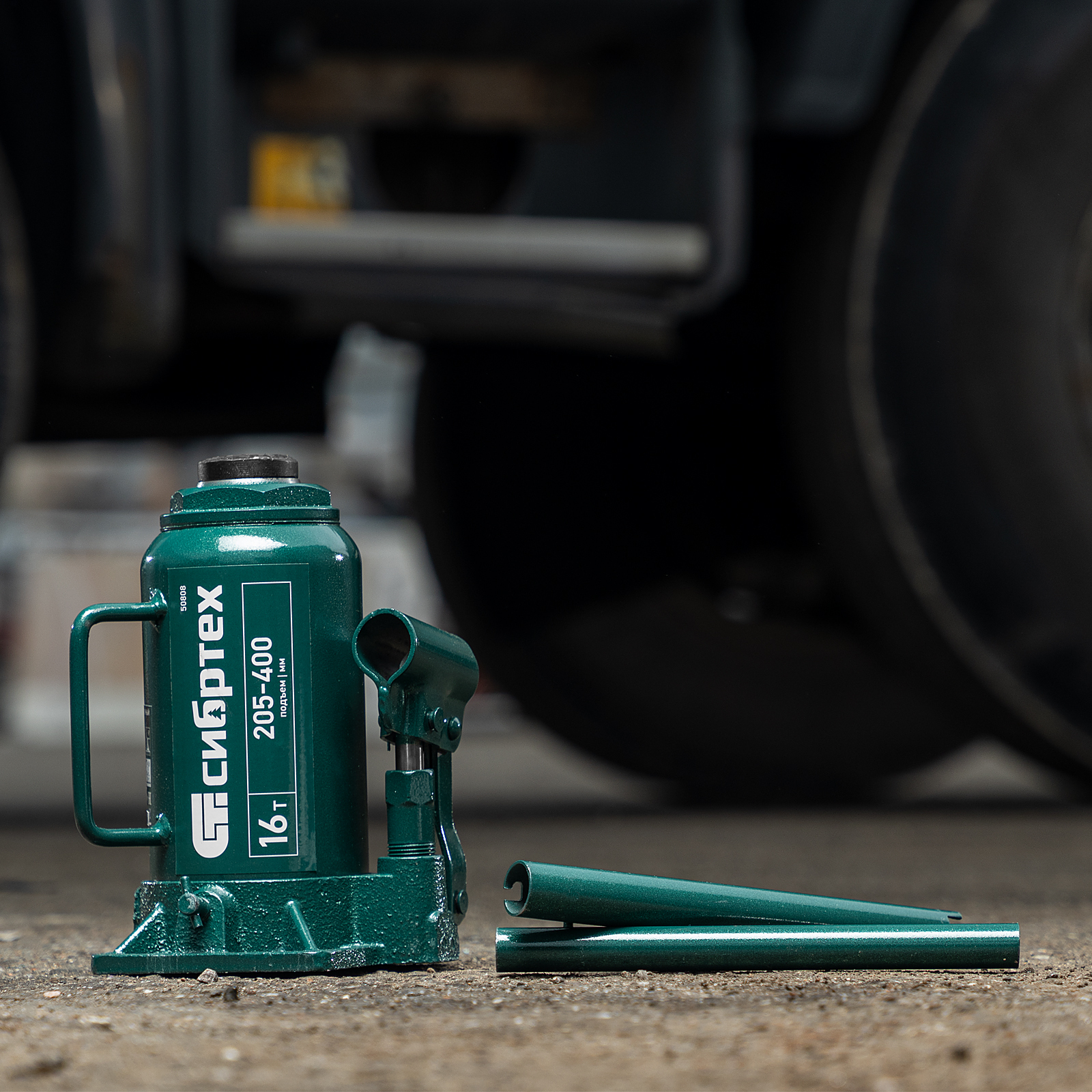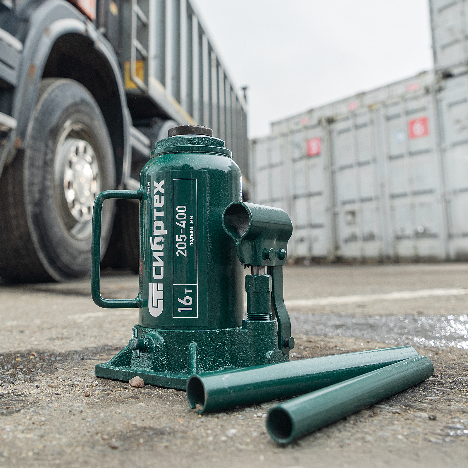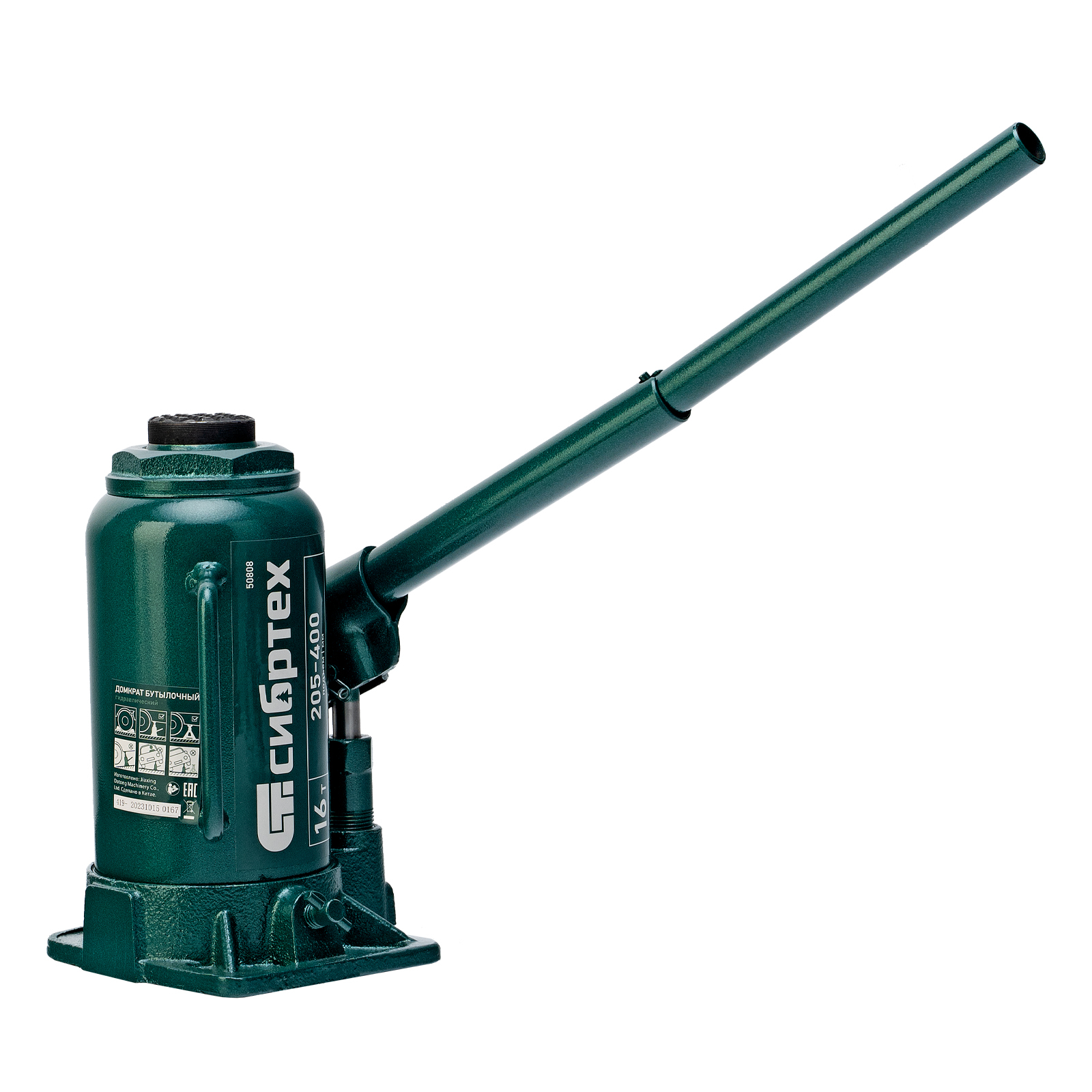 Домкрат гидравлический бутылочный Сибртех 50808 предназначен для подъема грузов массой до 16 т на высоту от 205 до 400 мм. Не требует больших усилий от пользователя и значительно облегчает рабочий процесс. Домкрат будет полезен при проведении техобслуживания машины в автосервисе или гараже.