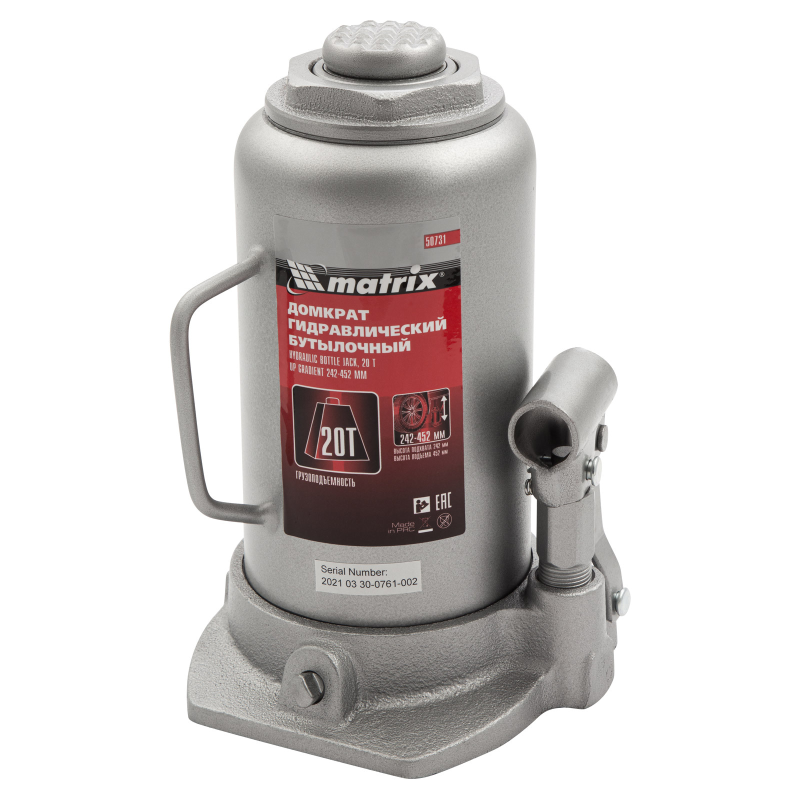 Домкрат гидравлический бутылочный Matrix 50731 используется для поднятия грузов массой до 20 т на высоту 242-452 мм. Подходит для автомобилей с высоким клиренсом. Домкрат будет полезен автолюбителям в гараже и дороге, а также сотрудникам СТО.