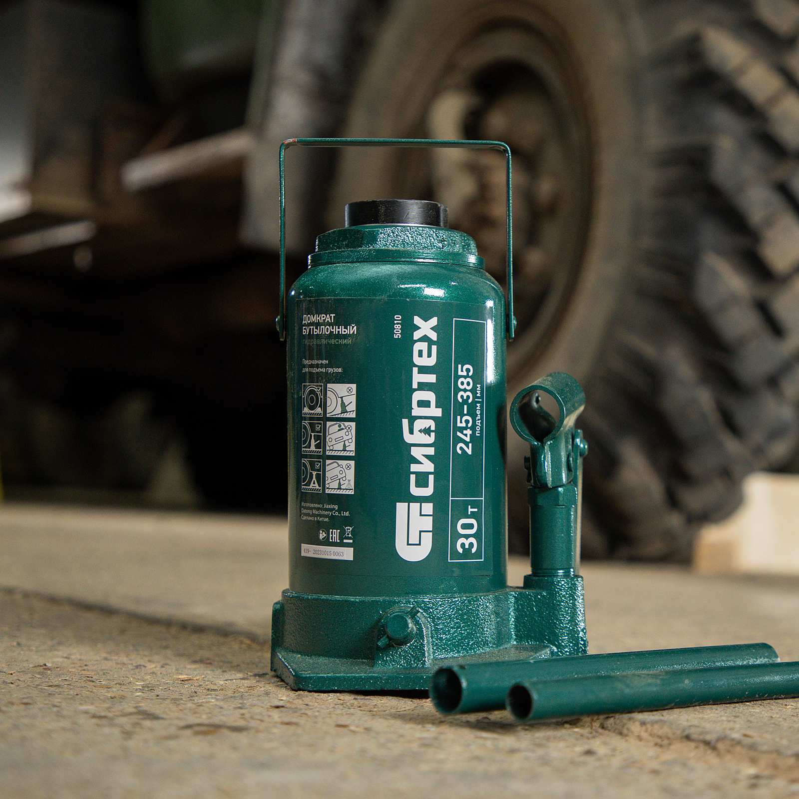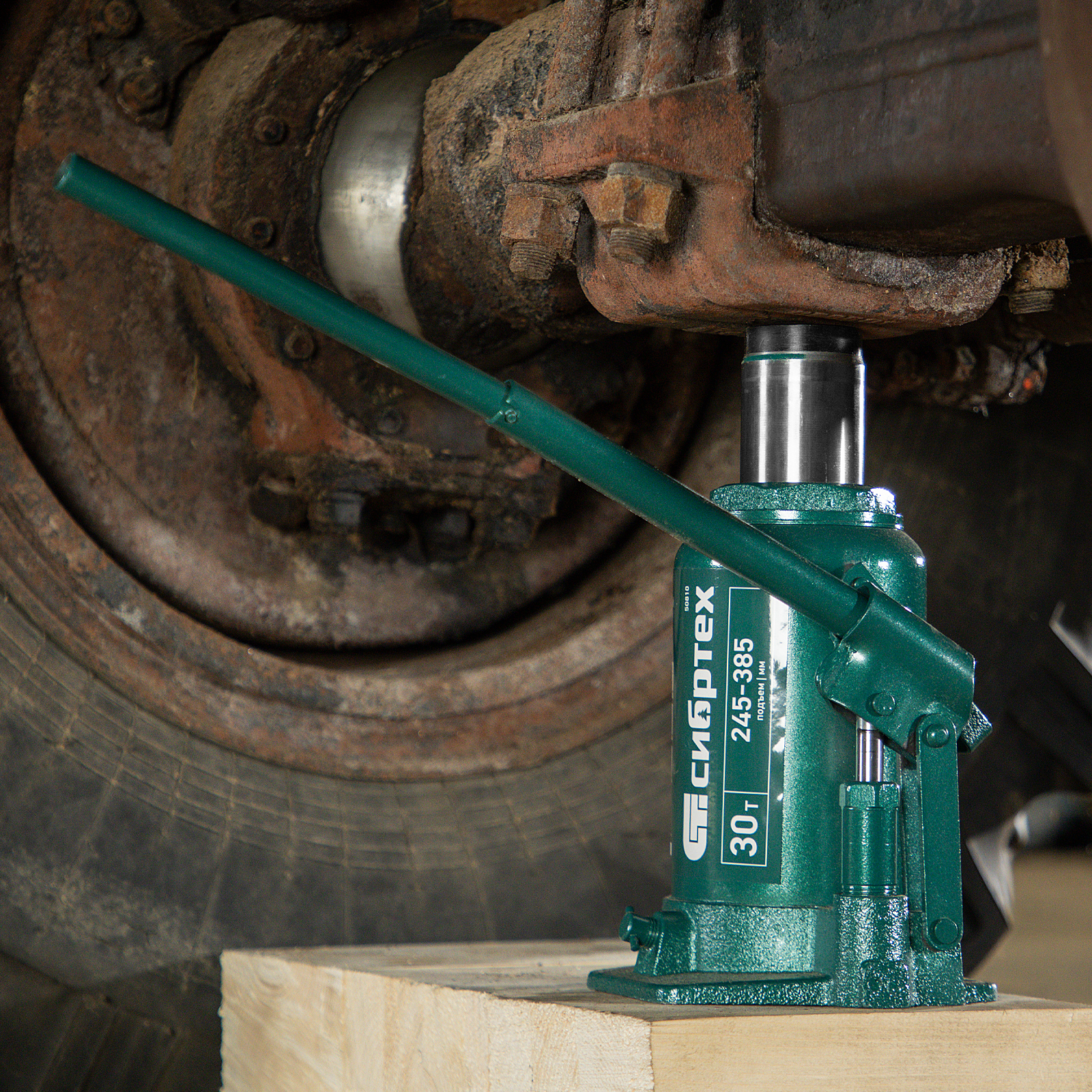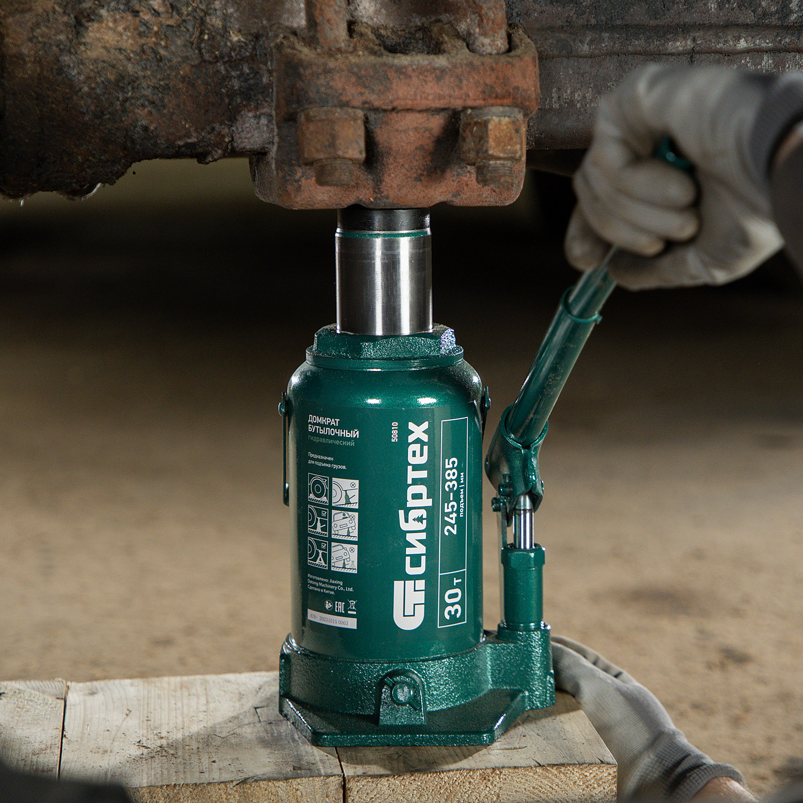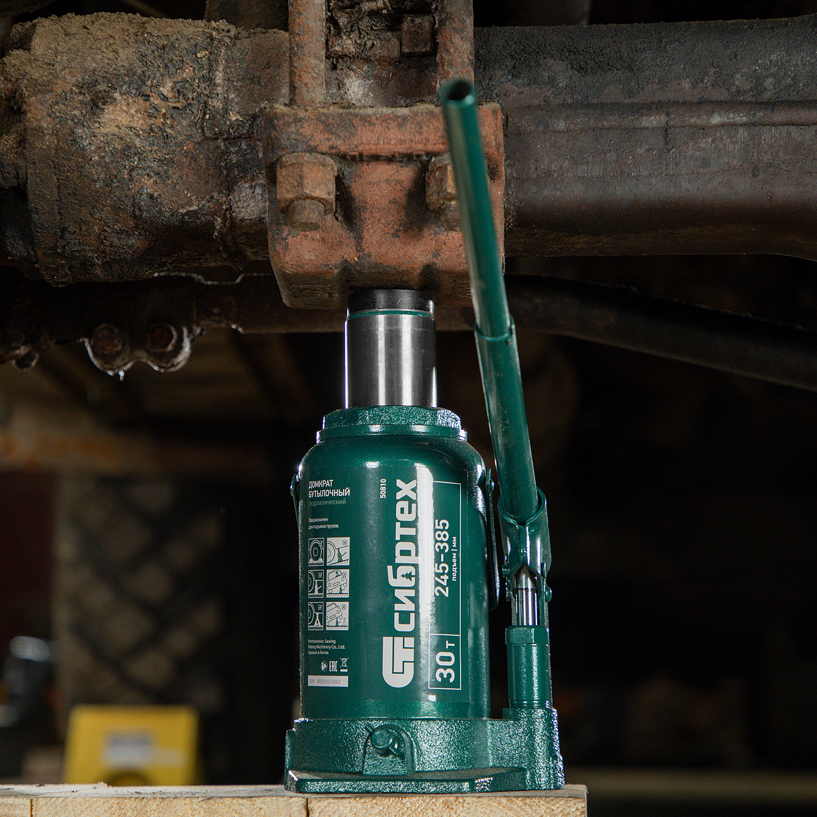 Домкрат гидравлический бутылочный Сибртех 50810 предназначен для подъема грузов массой до 30 т на высоту от 245 до 385 мм. Будет полезен при проведении техобслуживания машины в автосервисе или гараже.