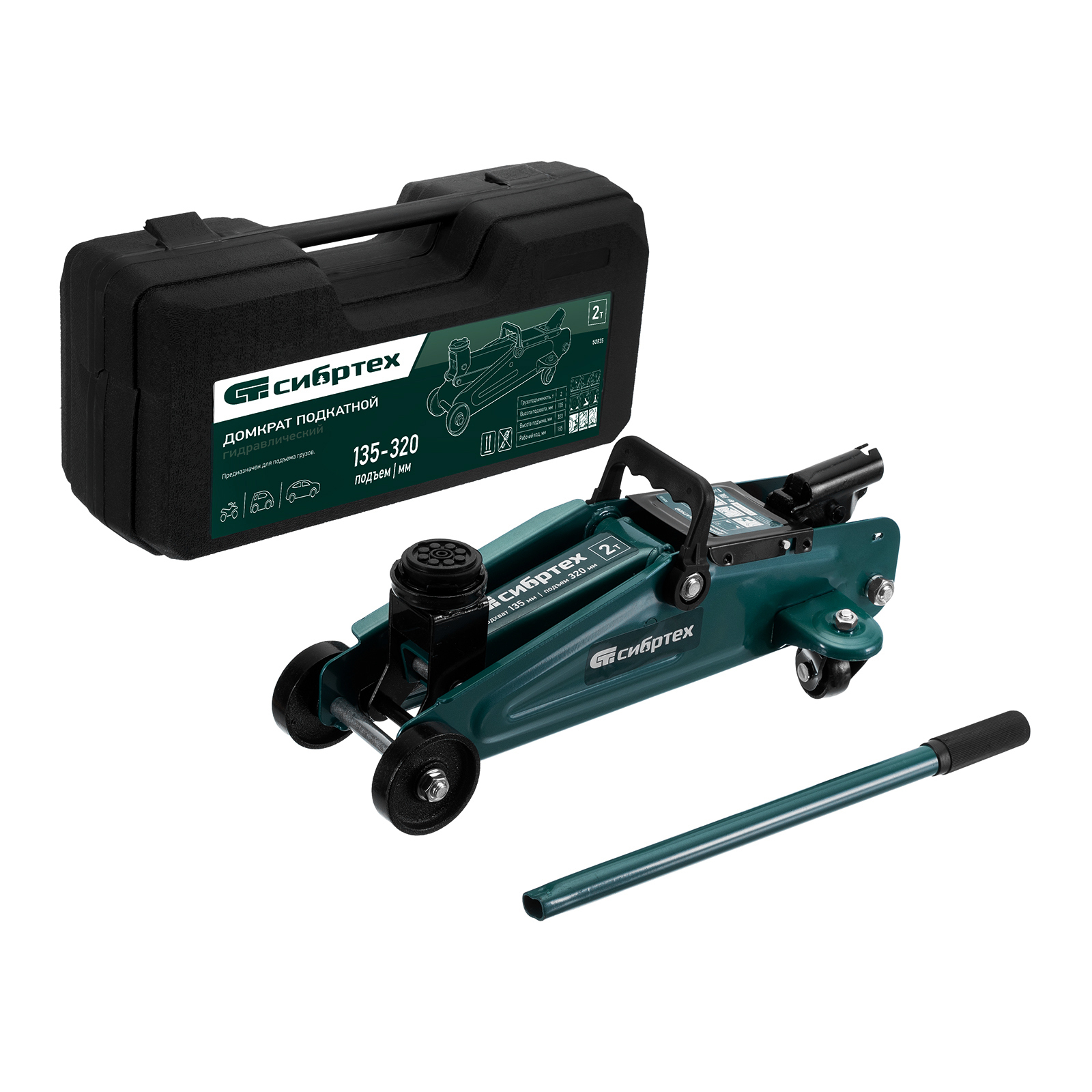 Гидравлический подкатной домкрат Сибртех 50835, поставляющийся в пластиковом кейсе, с высотой подхвата 135 мм, предназначен для подъема грузов массой до 2 т на высоту до 330 мм. Применяется для обслуживания автомобилей со стандартным клиренсом. Компактный домкрат подходит для самостоятельного использования автовладельцами.