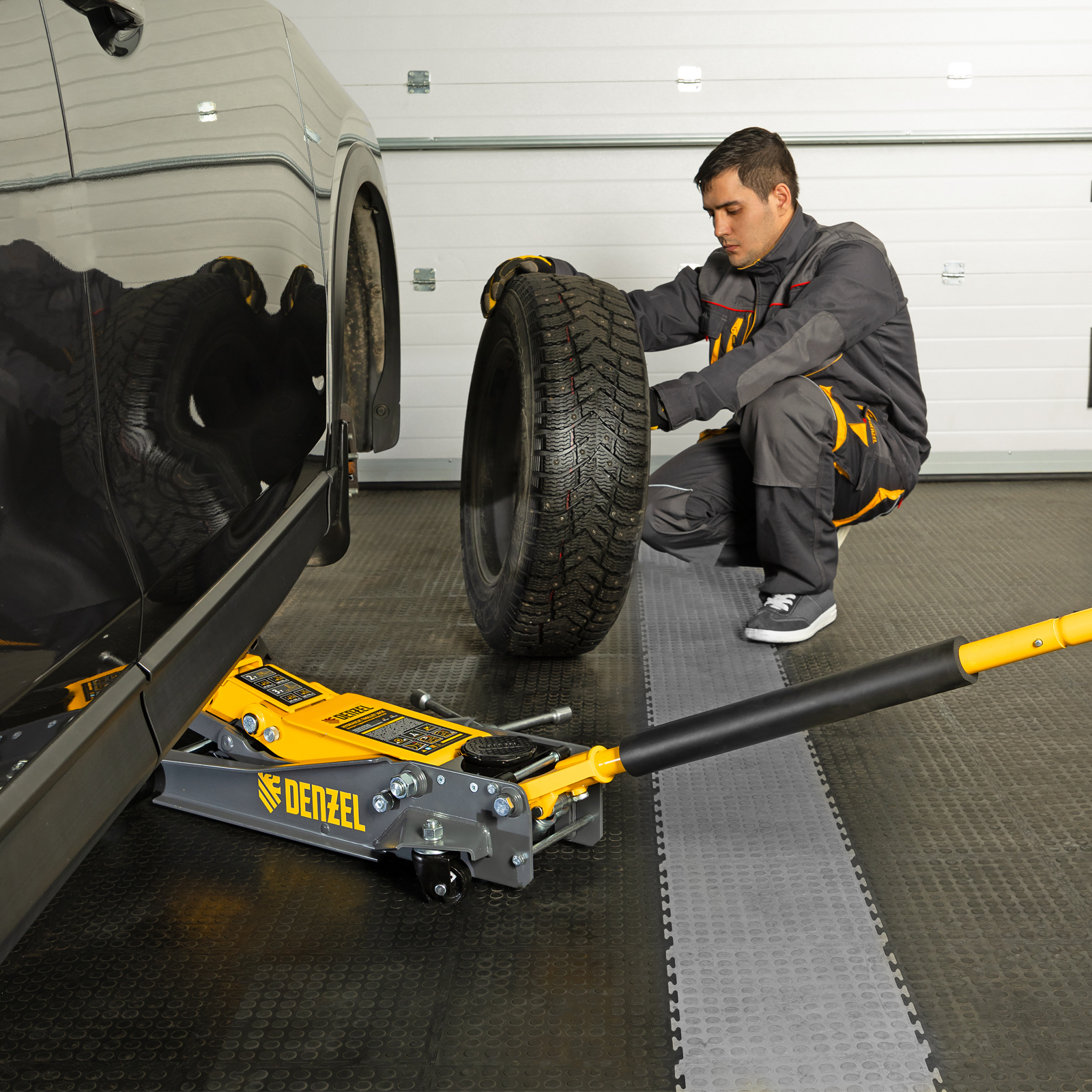 Профессиональный подкатной гидравлический домкрат Denzel 51270 с низким подхватом используется для быстрого подъема на высоту 98-770 мм всех типов автомобилей с любым клиренсом и массой до 2-3 т, в том числе SUV (внедорожников). Регулируемая проставка позволяет менять высоту подхвата и подъема, а также максимальную грузоподъемность. Высота подъема до 770 мм позволяет без труда обслуживать автомобили с высоким клиренсом, такие как рамные внедорожники, например, Dodge RAM, Ford Raptor и т.д.