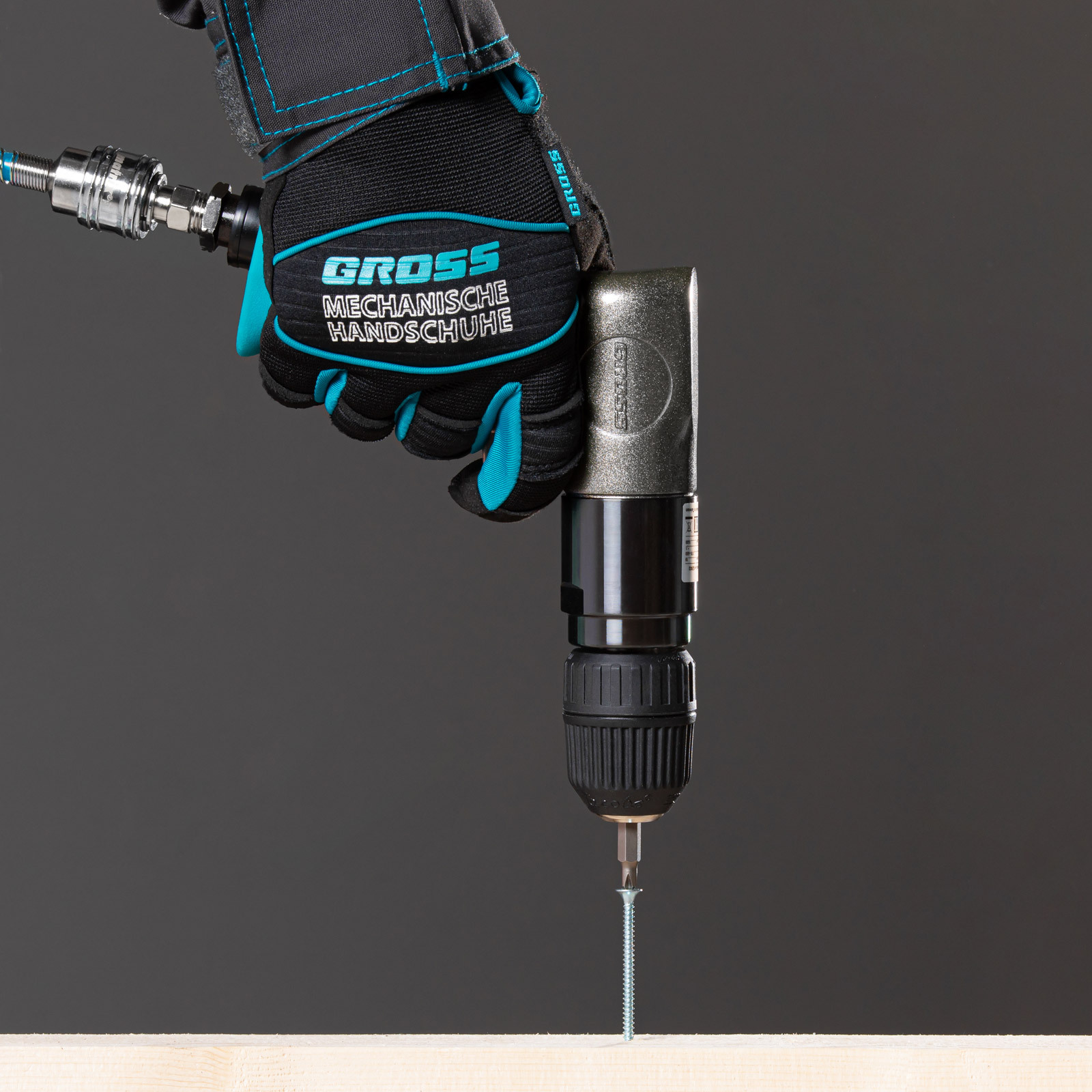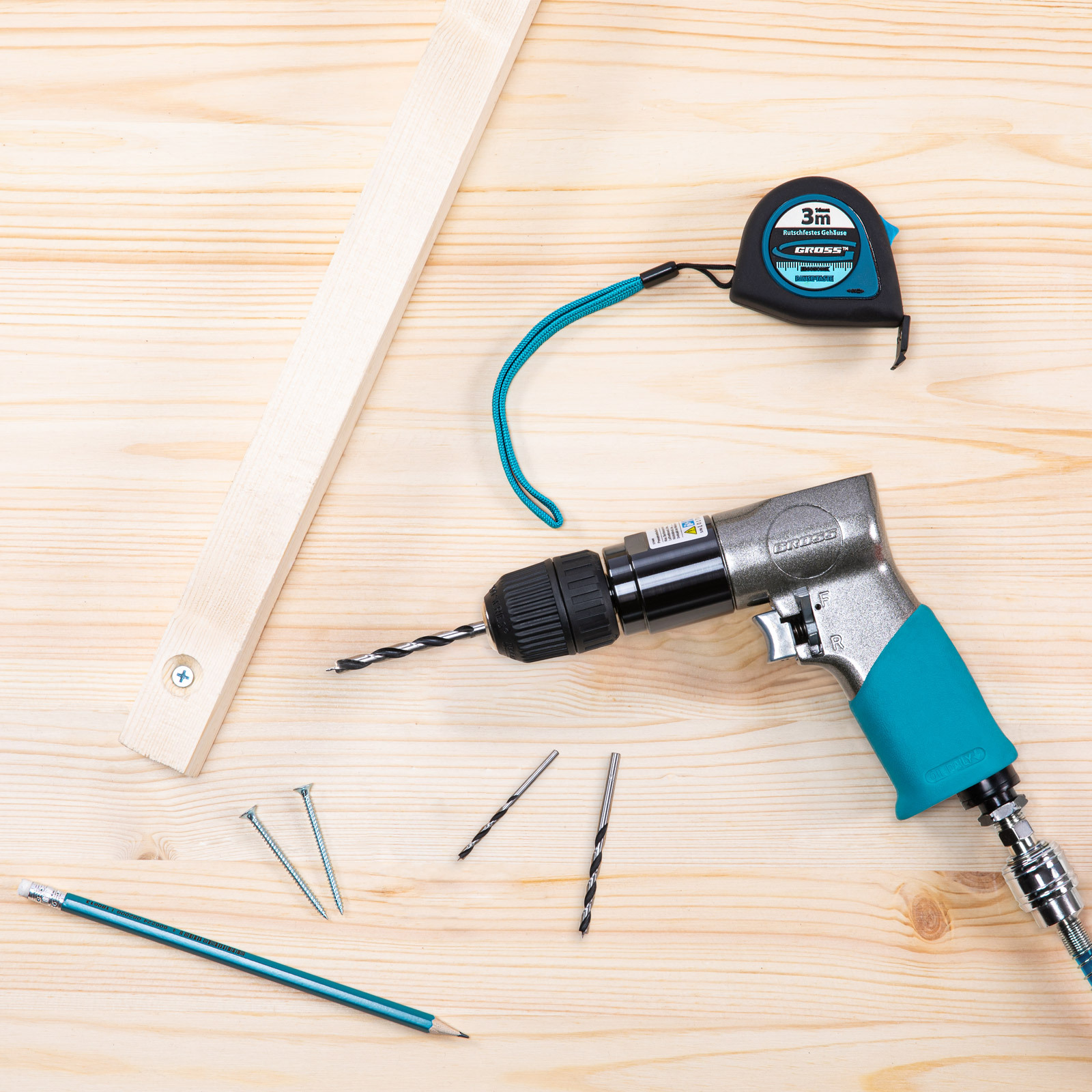 Пневматическая дрель Gross G302 57449 с патроном 10 мм (3/8″) и частотой вращения 1800 об/мин, предназначена для оснастки диаметром до 10 мм и позволяет сверлить отверстия в деревянных, металлических и пластиковых конструкциях. Это надежный инструмент, который не перегревается даже при интенсивных нагрузках, поэтому его можно применять в промышленных целях на сборочных производствах, в автосервисах и на строительных площадках.