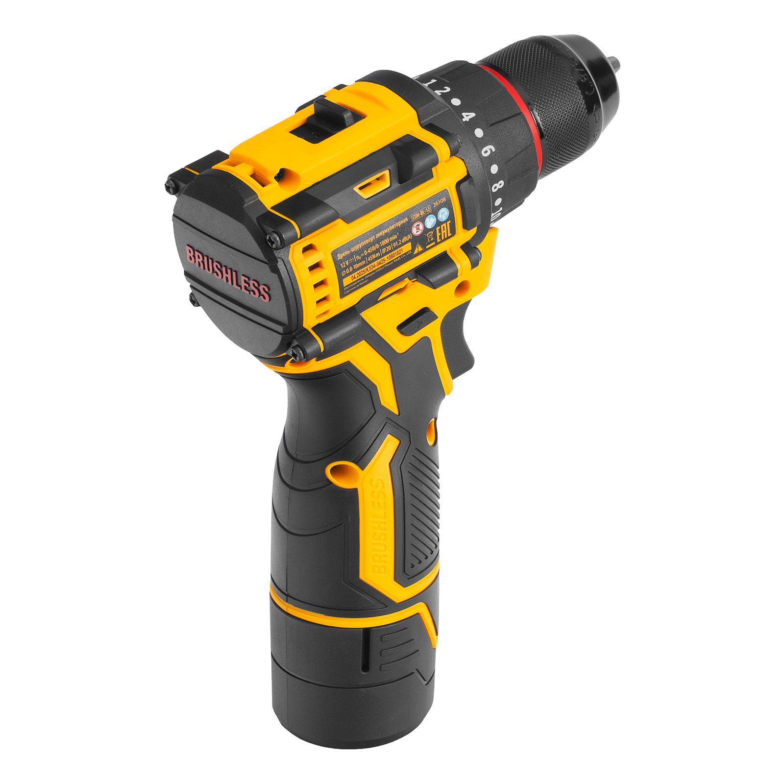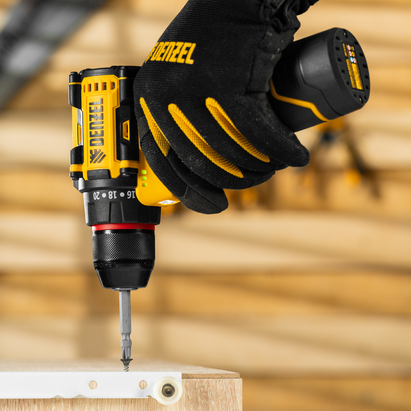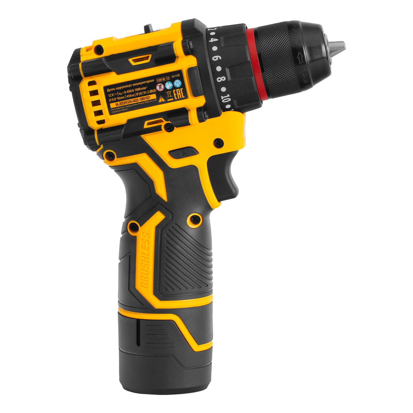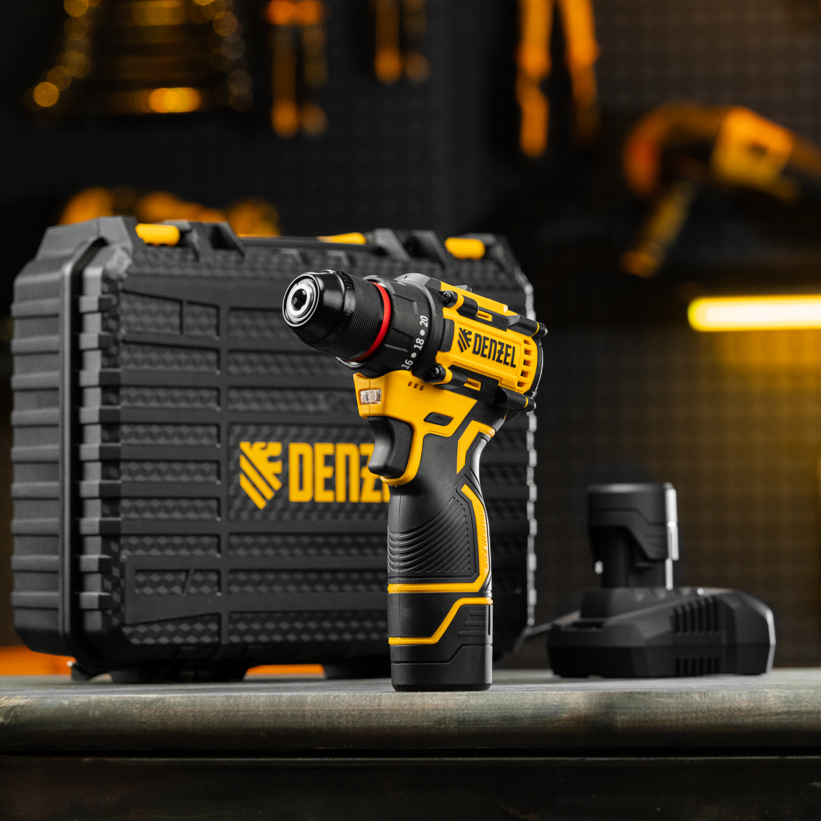 Аккумуляторная дрель-шуруповерт Denzel CDH-BL-12 26108 используется для закручивания и откручивания резьбового крепежа, а также для сверления отверстий в древесине, металле, пластмассе и других материалах. Максимальный диаметр сверления в металле составляет 10 мм, в древесине — 25 мм. Работает от аккумулятора Li-Ion 12 В емкостью 2 А·ч. Мощный бесщеточный двигатель позволяет развивать крутящий момент до 45 Н·м для эффективного применения в быту.