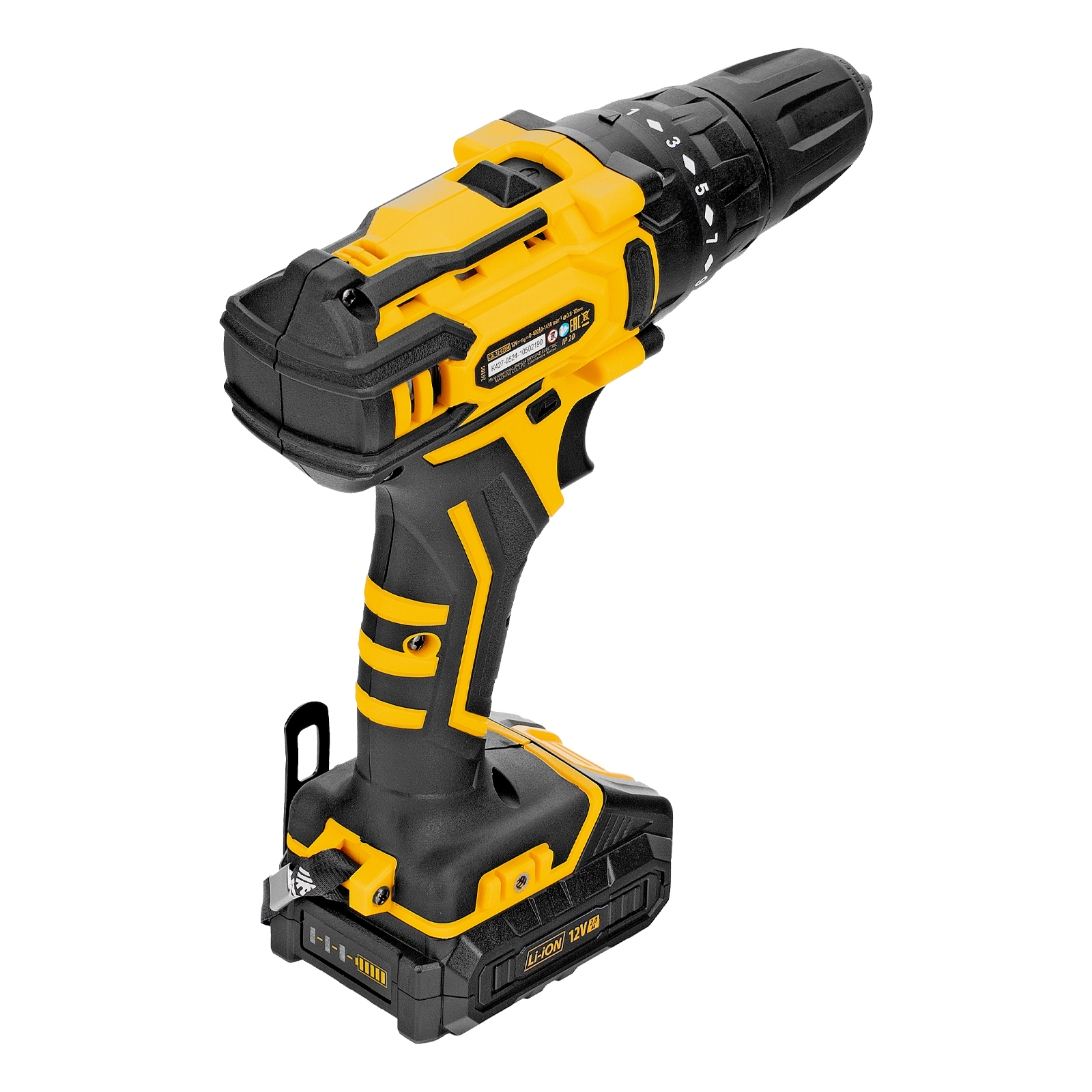 Аккумуляторная дрель-шуруповерт Denzel CDL-12-02BM 26105 с 2 батареями Li-Ion 12 В предназначена для монтажа и демонтажа резьбовых соединений, cверления отверстий в металле (до 10 мм), древесине (до 16 мм), пластмассе и других материалах. Инструмент пригодится профессионалам и любителям на строительной площадке, дома или на даче.,Надежные литий-ионные аккумуляторы без эффекта памяти и защитой от глубокого разряда обеспечивают долгий срок службы инструмента. Дрель не зависит от сети питания, что делает удобной работу на строительных объектах, на высоте и в отдаленных участках дома.