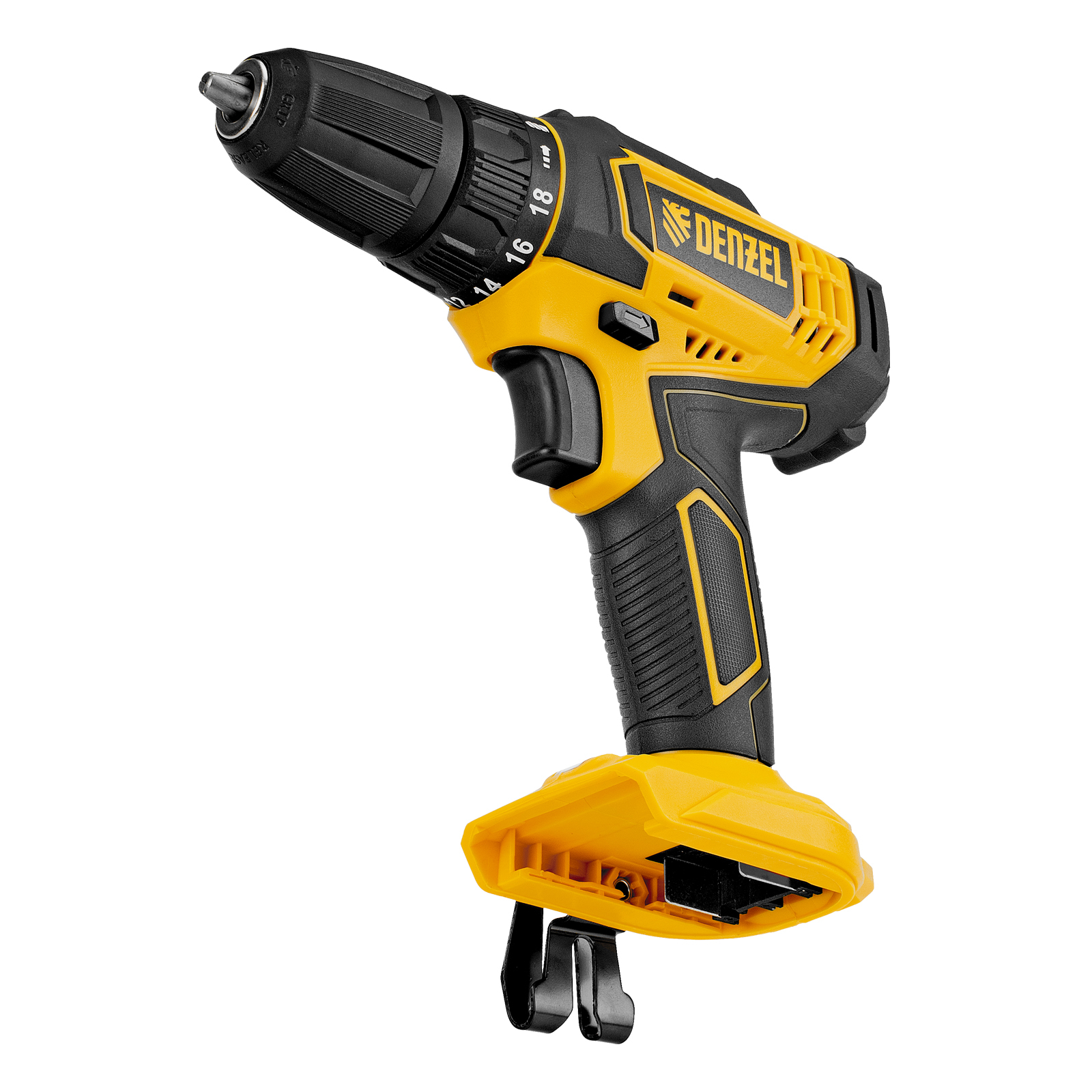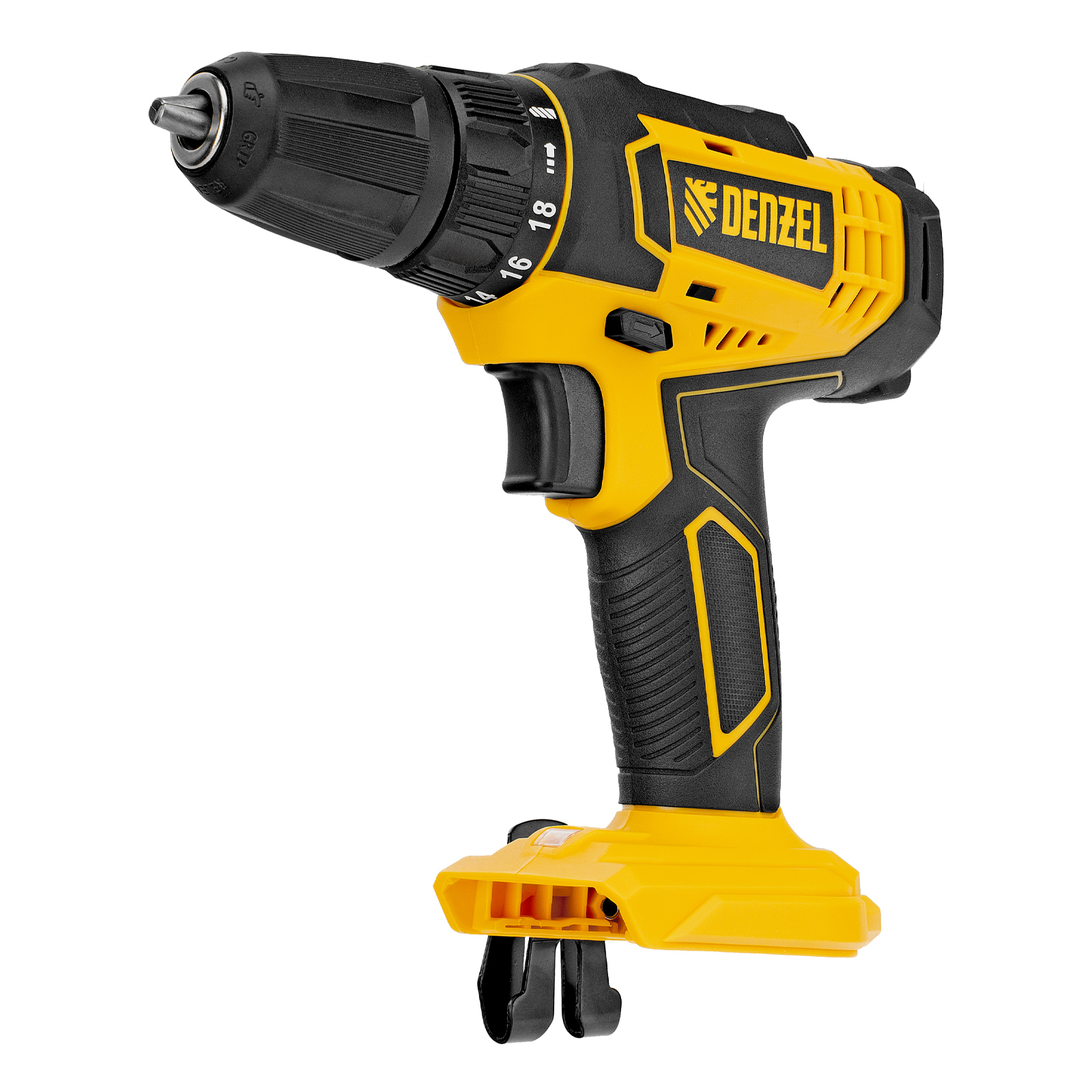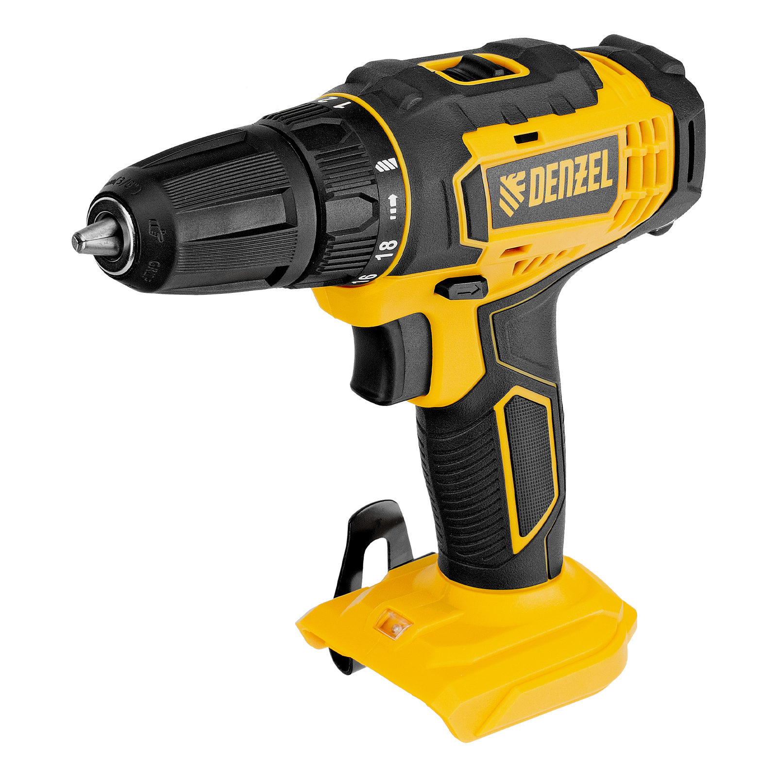 - Универсальность — дрель-шуруповерт совместима с любым Li-Ion аккумулятором единой платформы Denzel Battery System 18V.
