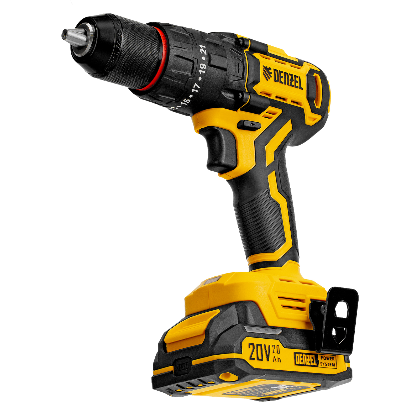 - Универсальность — аккумулятор Li-Ion емкостью 2 А·ч совместим со всеми инструментами единой платформы Denzel Power System 20V.